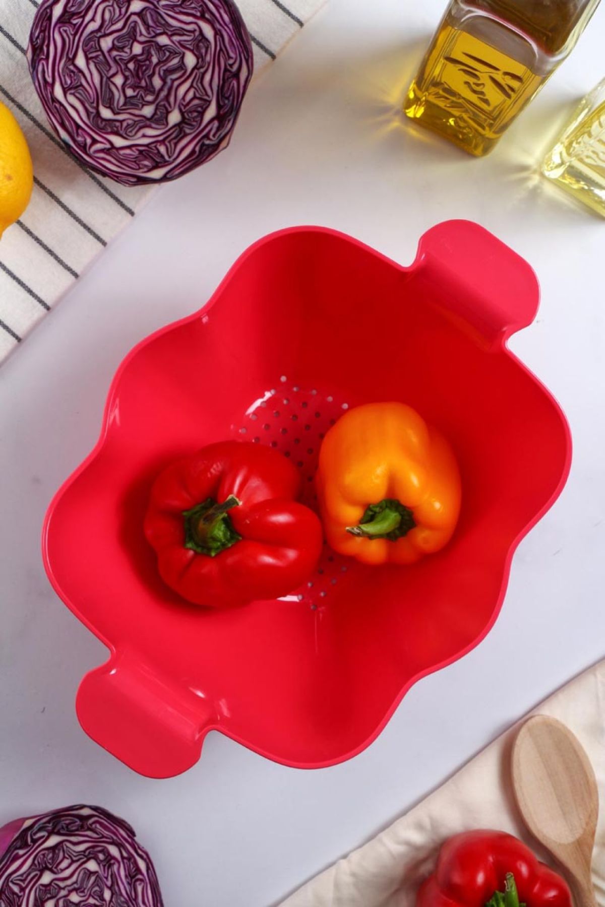 Ew's akrilik süzgeçler ergonomik tasarımı ve ideal boyutu ile mantı ve makarnayı süzmede, meyve ve sebzeleri yıkamada kolaylık sağlar.