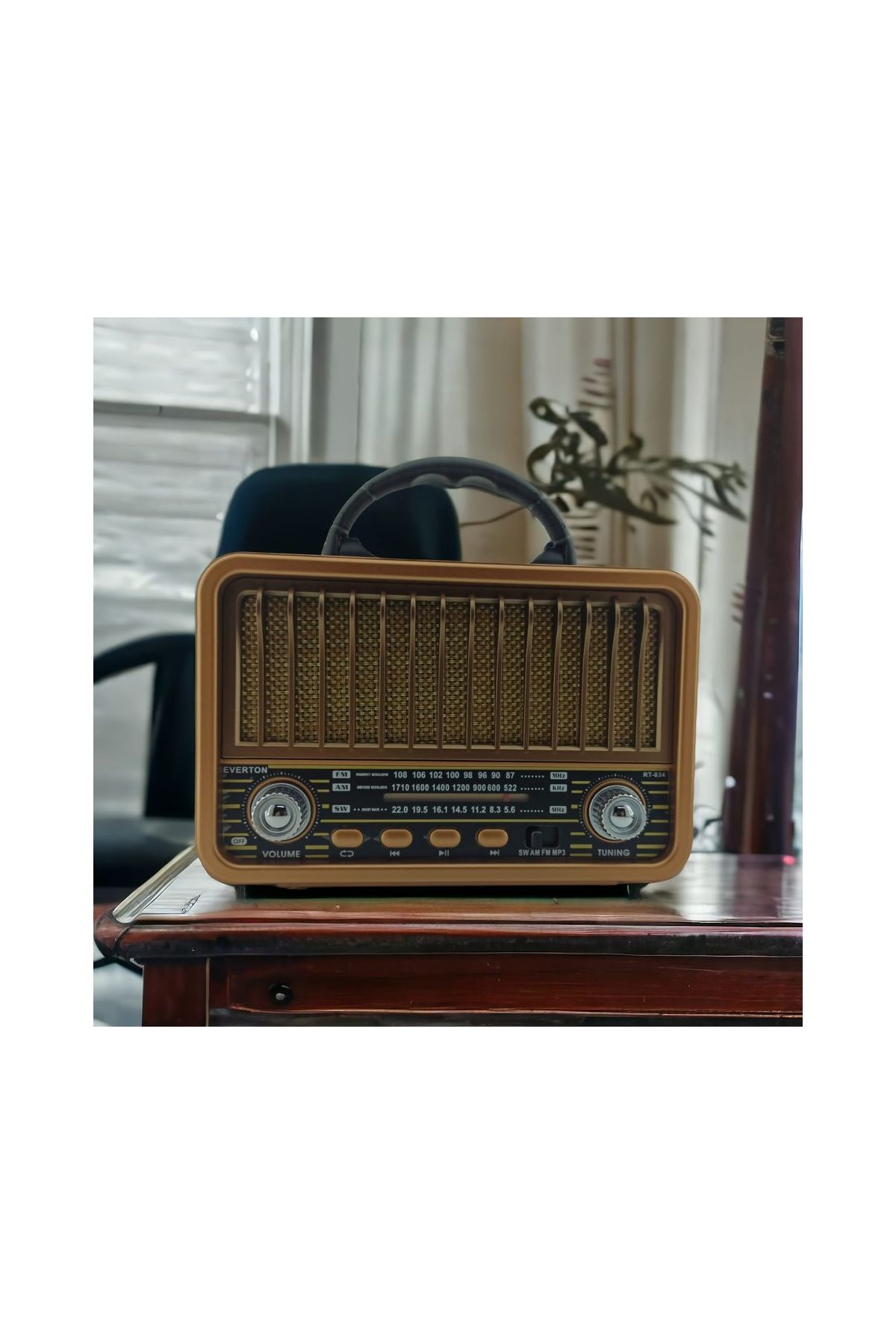 Nostaljik Görünümlü USB SD AUX Bluetooth Destekli Solar Panelli Şarjlı + Pilli Radyo RT-834