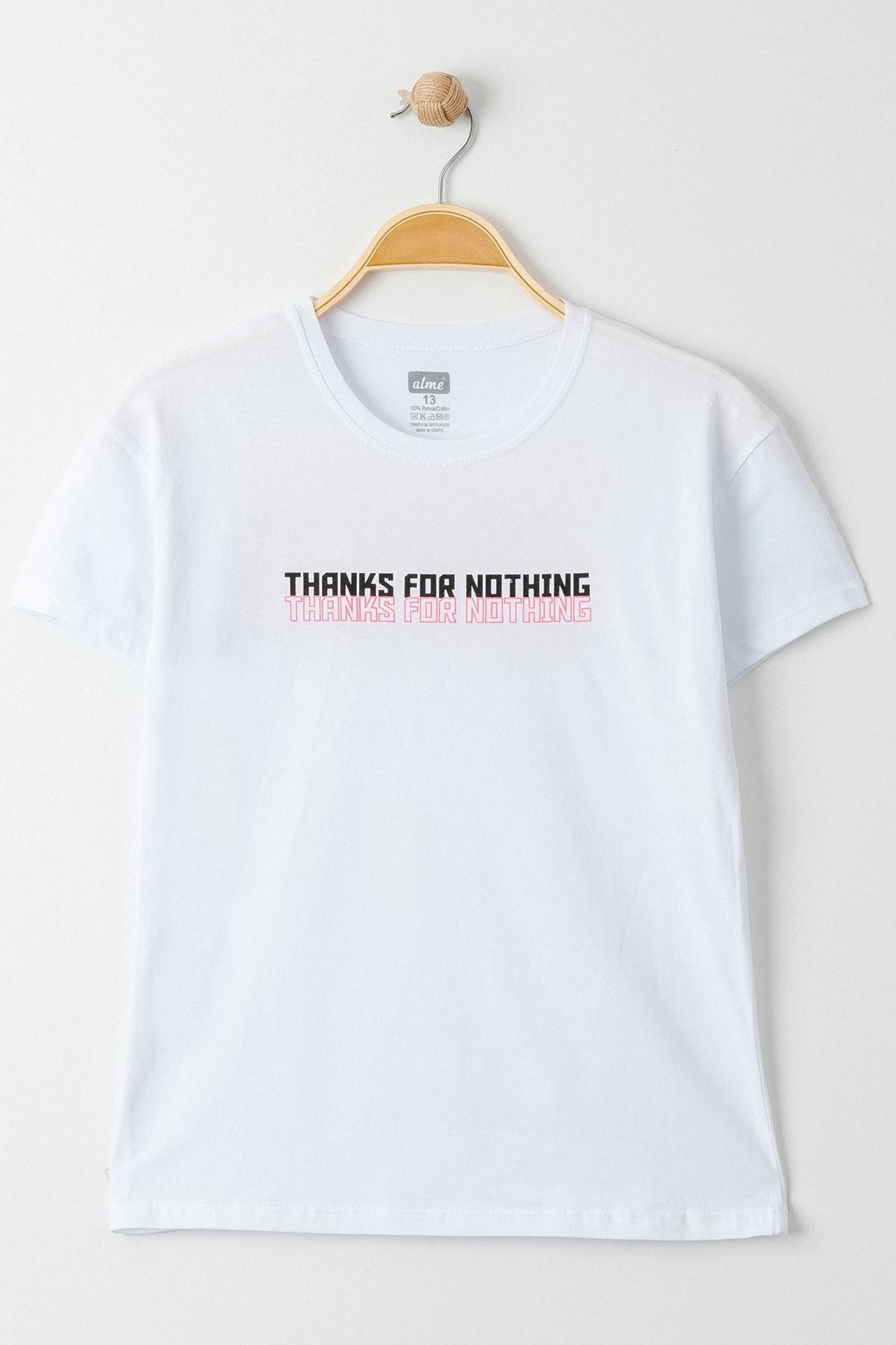 275 13-16 Yaş Baskılı Çocuk Tişört Beyaz