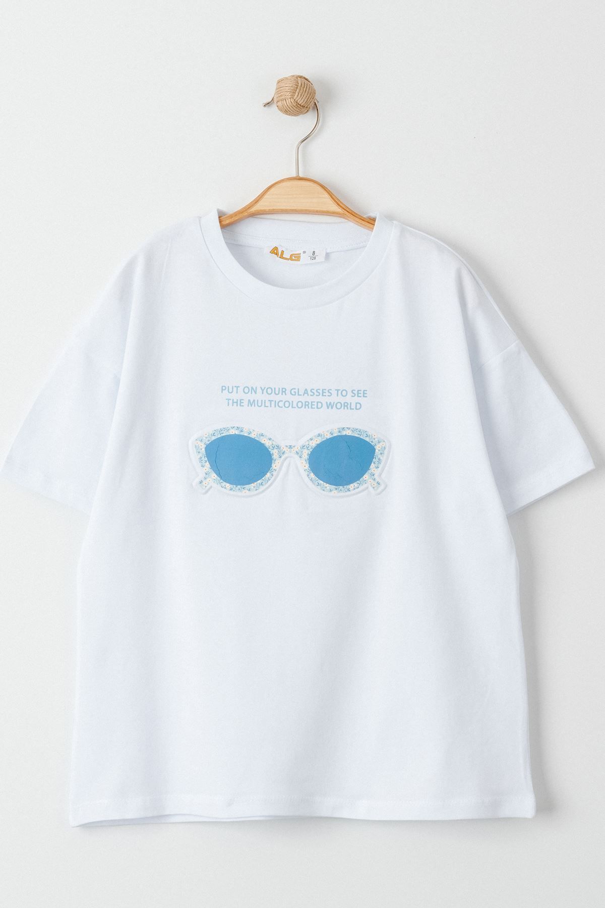 275 8-12 Yaş Baskılı Çocuk Tişört Beyaz
