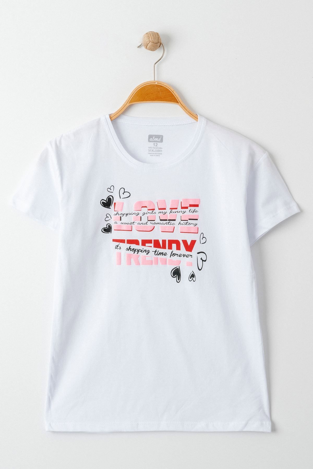 275 8-12 Yaş Baskılı Çocuk Tişört Beyaz