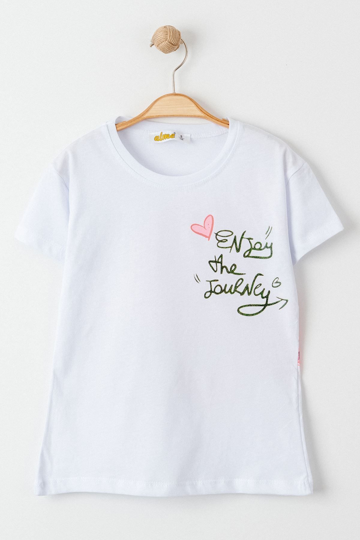 275 8-12 Yaş Baskılı Çocuk Tişört Beyaz