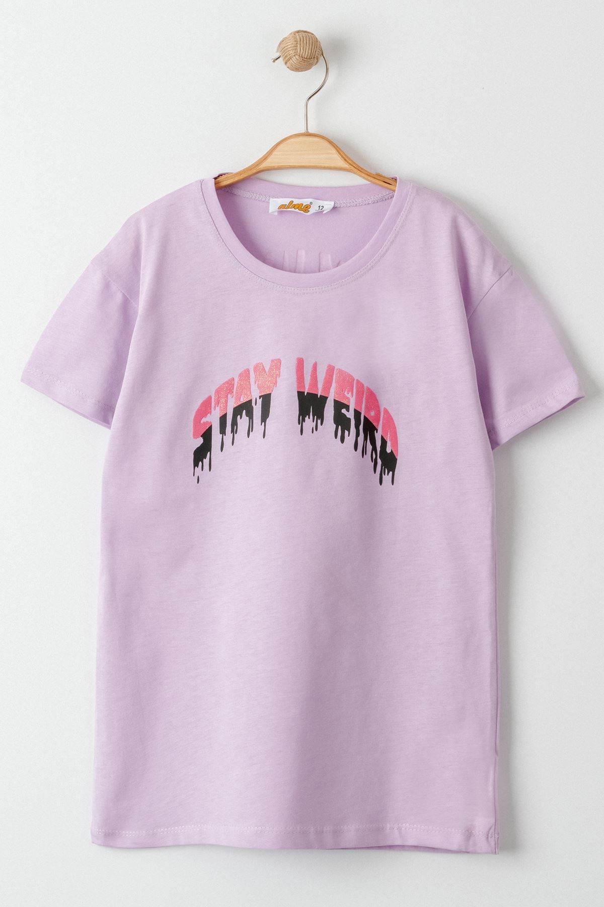 275 8-12 Yaş Baskılı Çocuk Tişört Lila