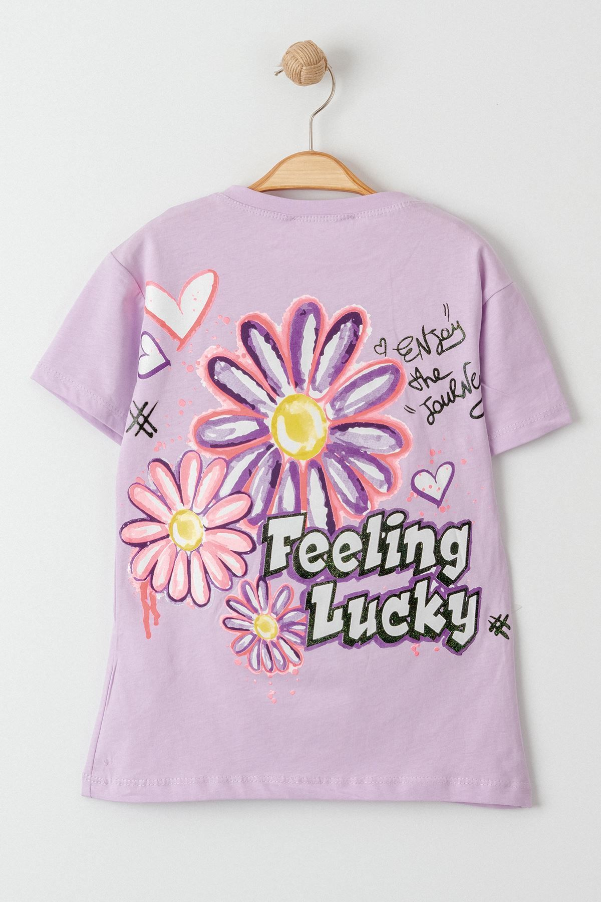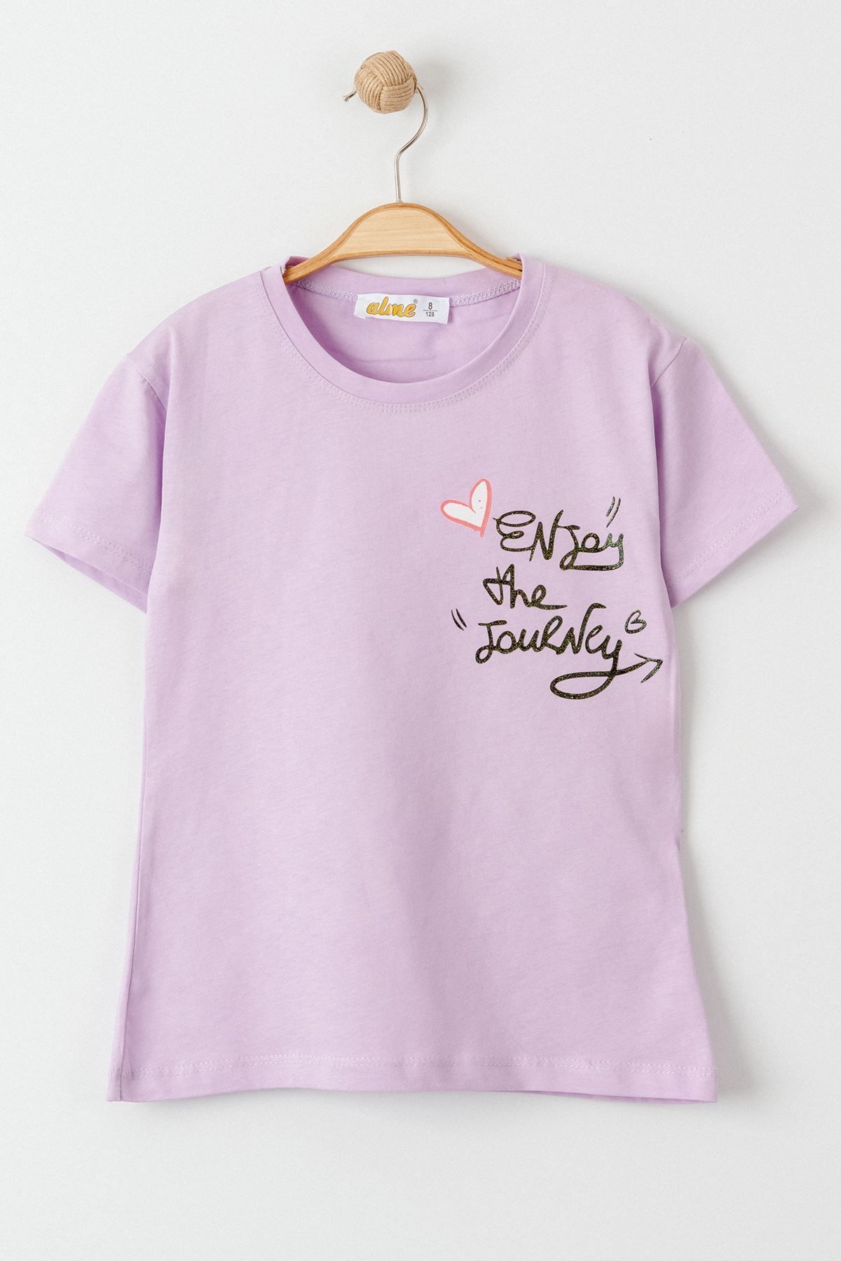 275 8-12 Yaş Baskılı Çocuk Tişört Lila