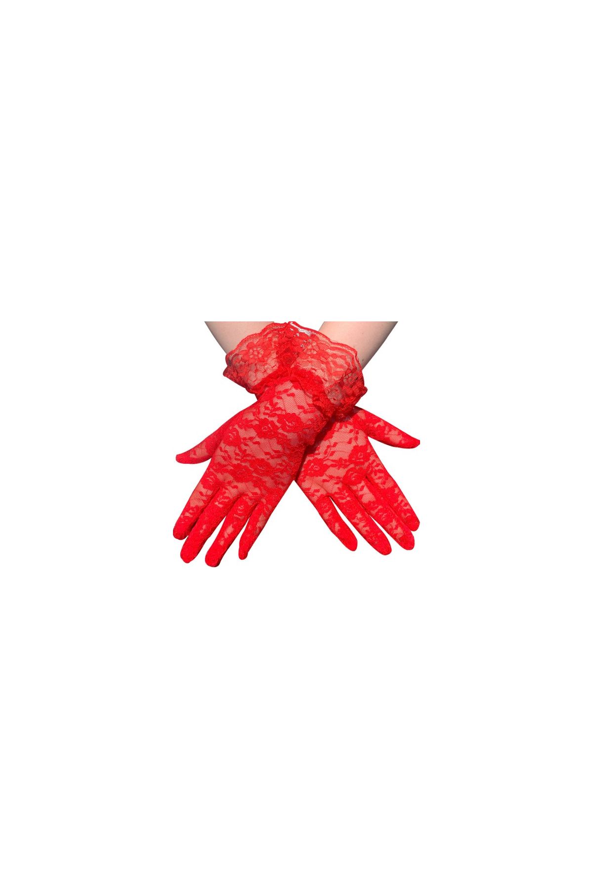 192 Kırmızı Dantelli Eldiven Yetişkin
