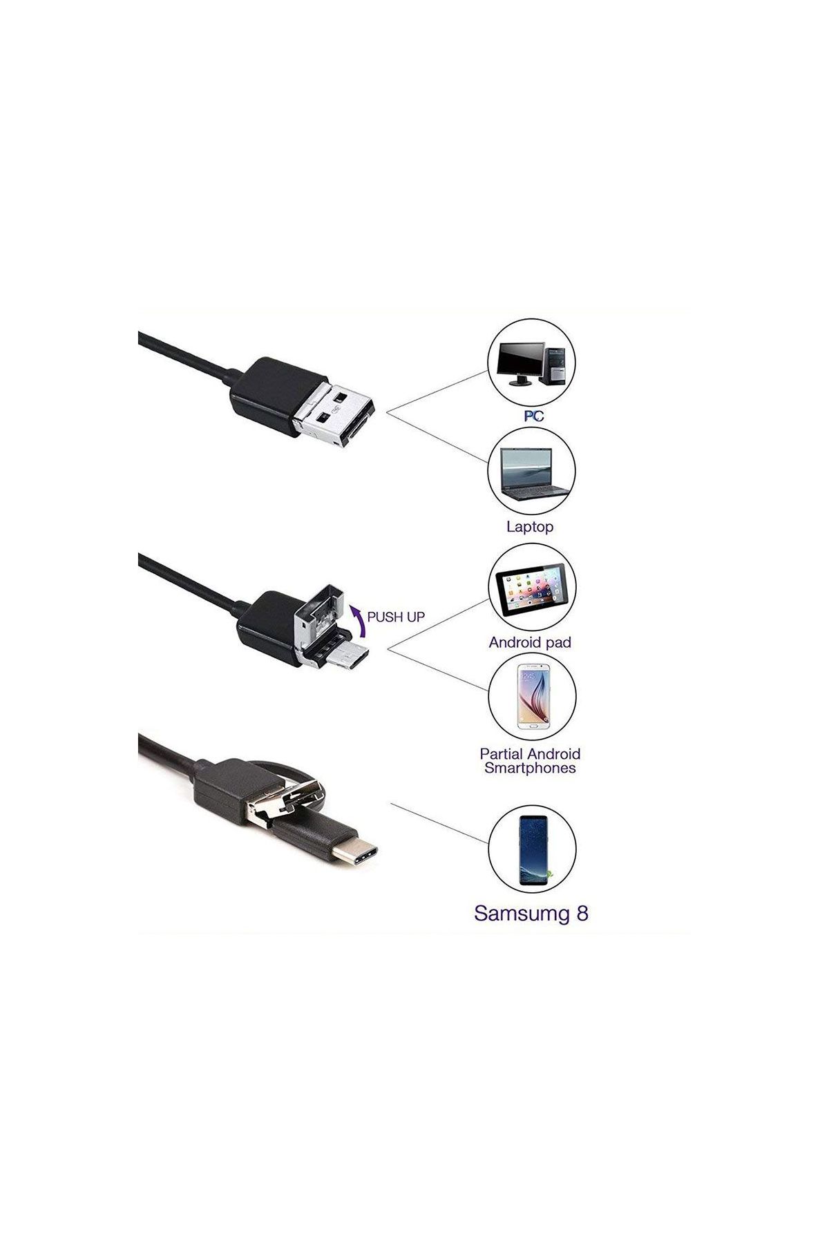 Endoskop 3 in 1 Yılan Kamera USB Micro Usb Type-C Uyumlu 20M