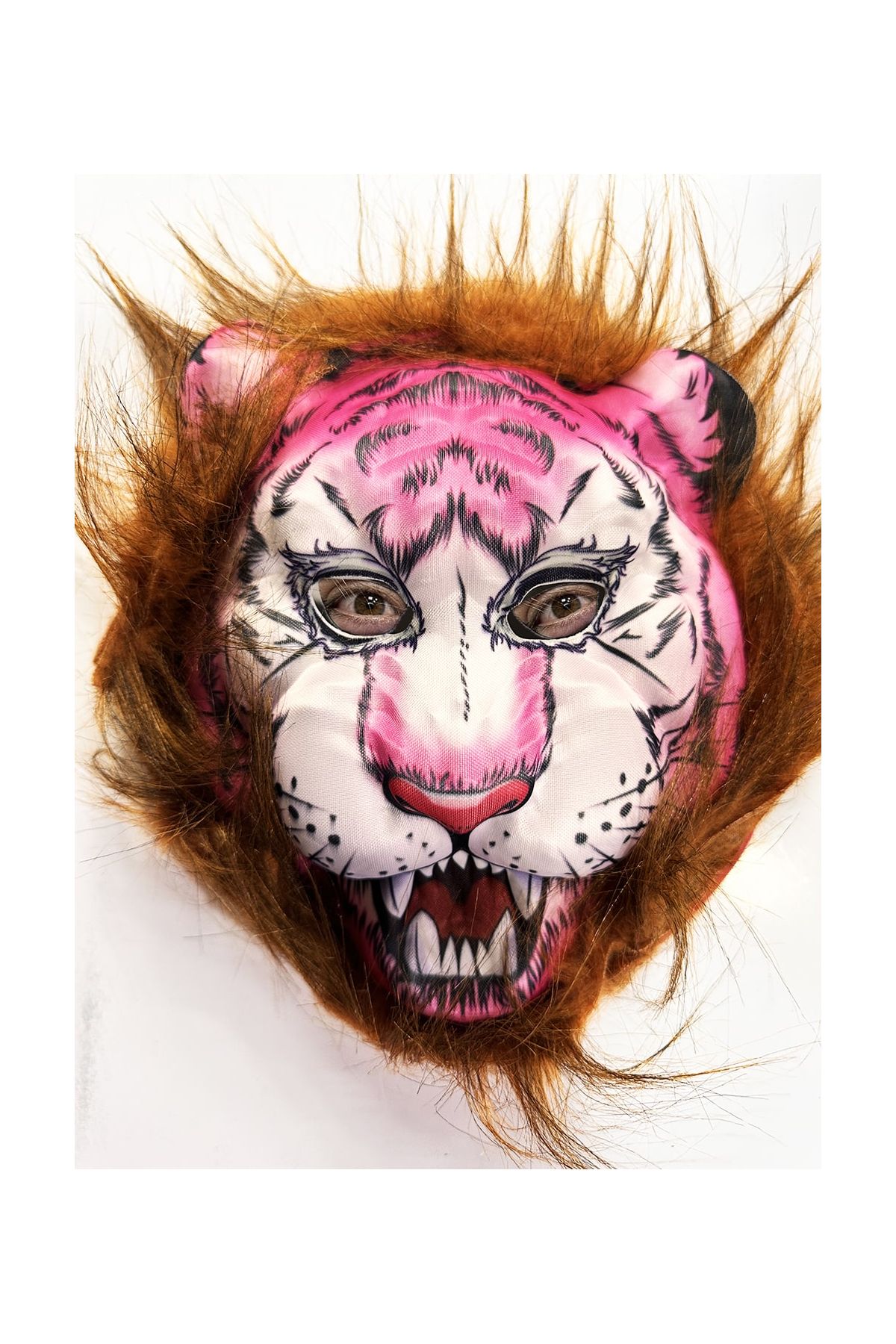 Kahverengi Saçlı Pembe Yüz Kurt Maske Kaplan Maske Mega Peluş 26 No