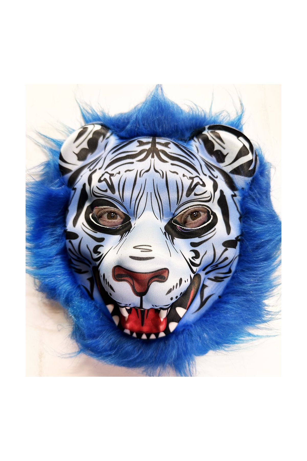 Mavi Saçlı Kaplan Maskesi Kurt Maskesi Mega Peluş 27 No