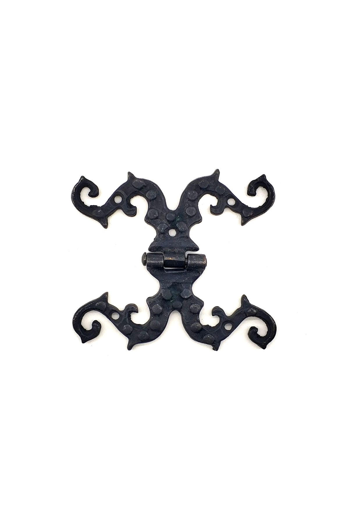 Antika Tarz Dekoratif Pirinç Süslü Menteşe - 100x90 mm, Oksit
