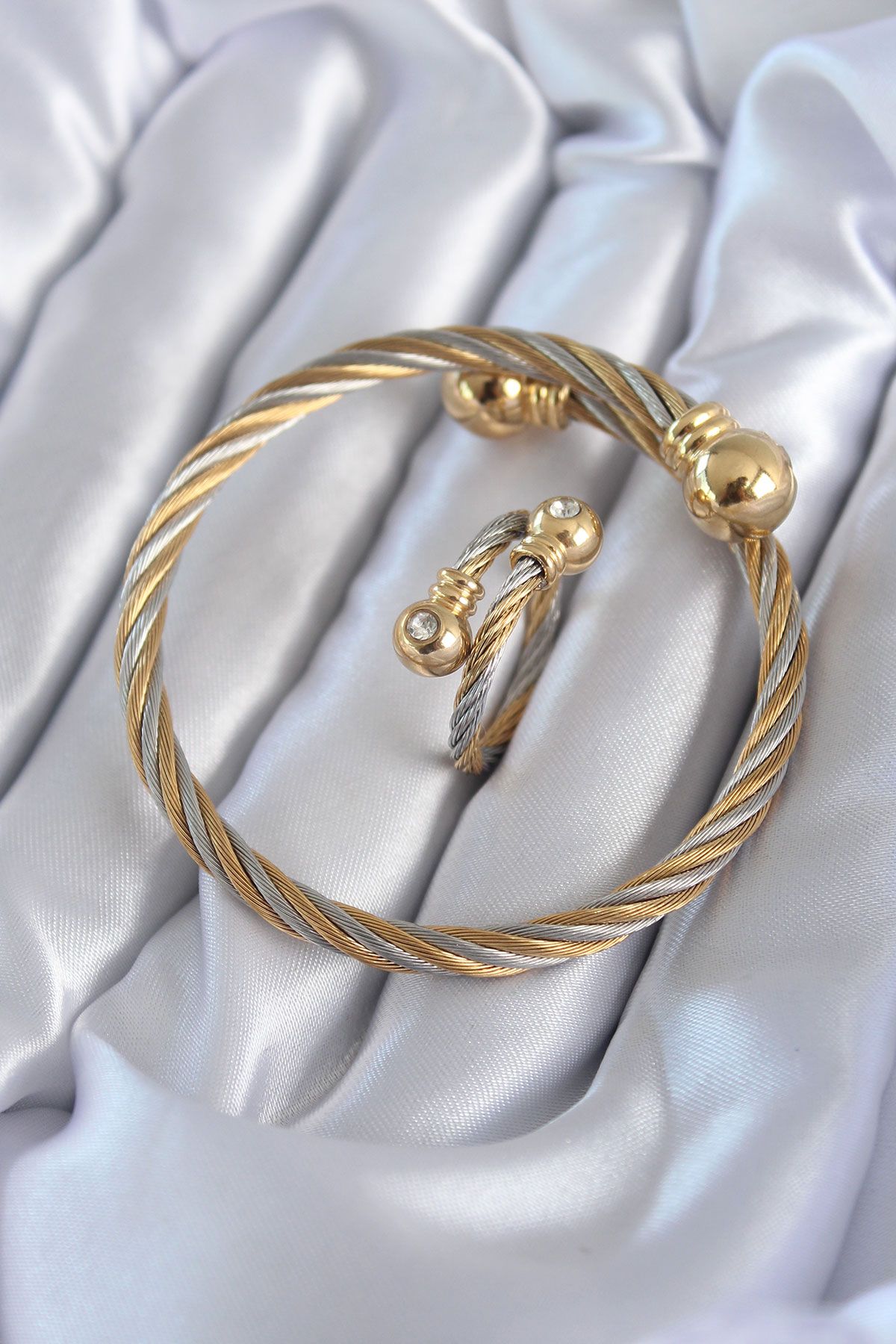 943 316L Çelik Mix Renk Sarmal Model Erkek Bileklik Yüzük Kombini