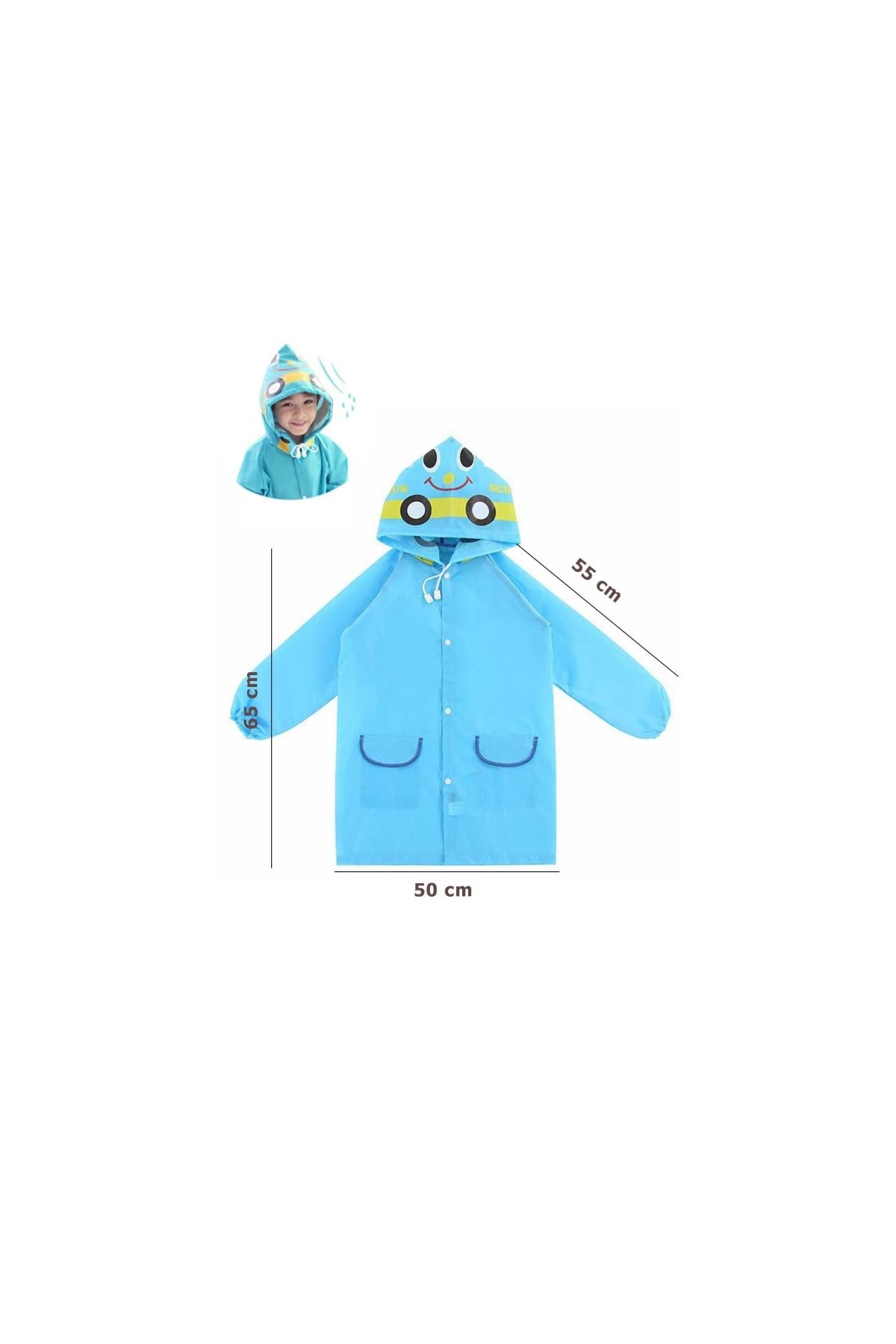 1 Adet Mavi Çocuk Yağmurluk Karikatür Desenli Su Geçirmez