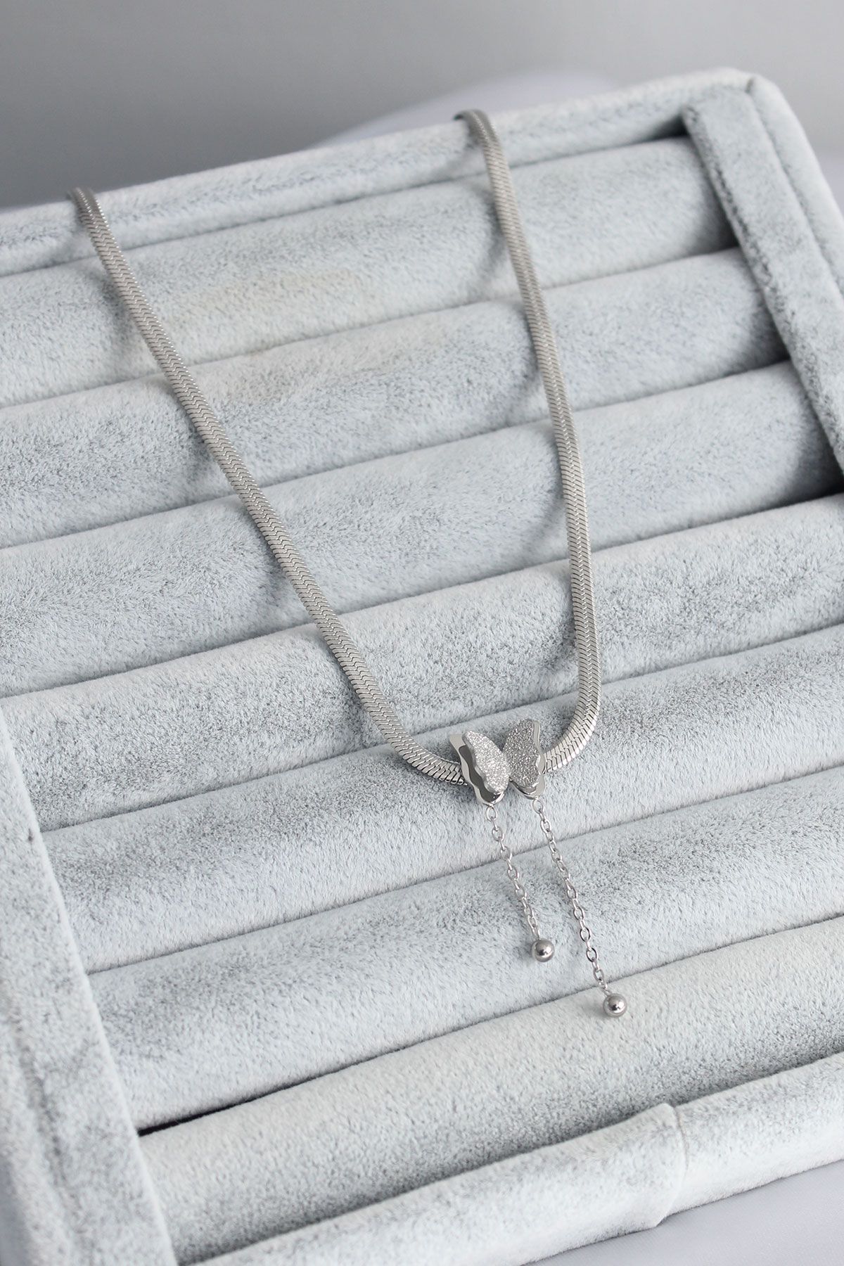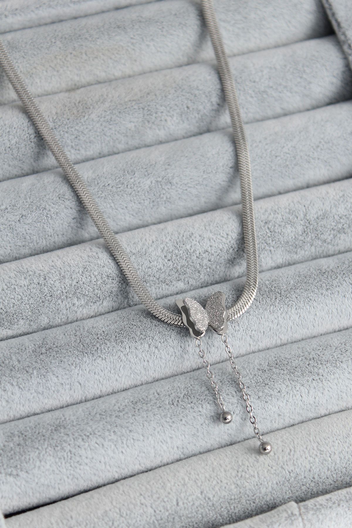 316L Çelik Gümüş Renk İtalyan Zincir Model Simli Kelebek Figür Kadın Kolye - TJ-BKO7676