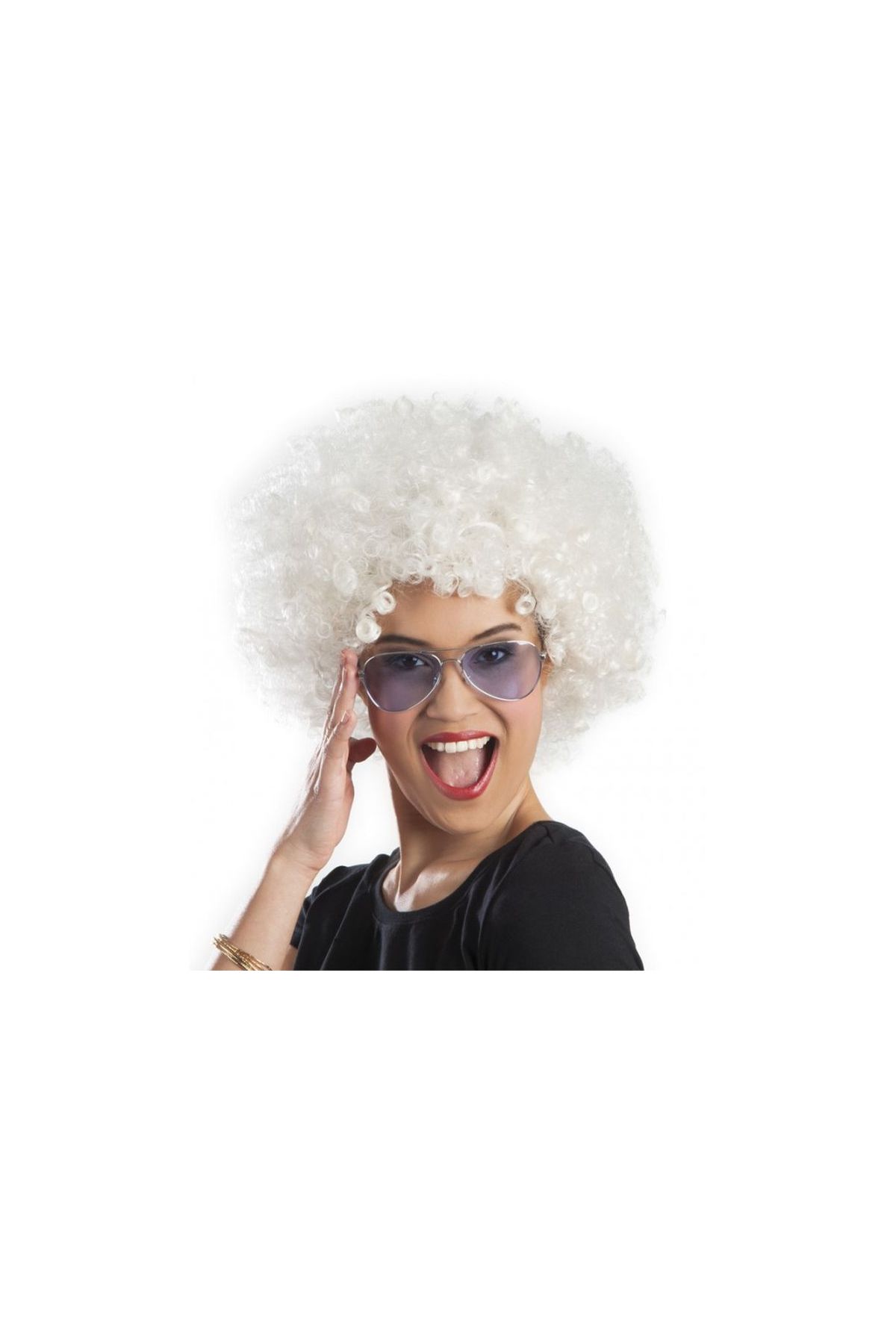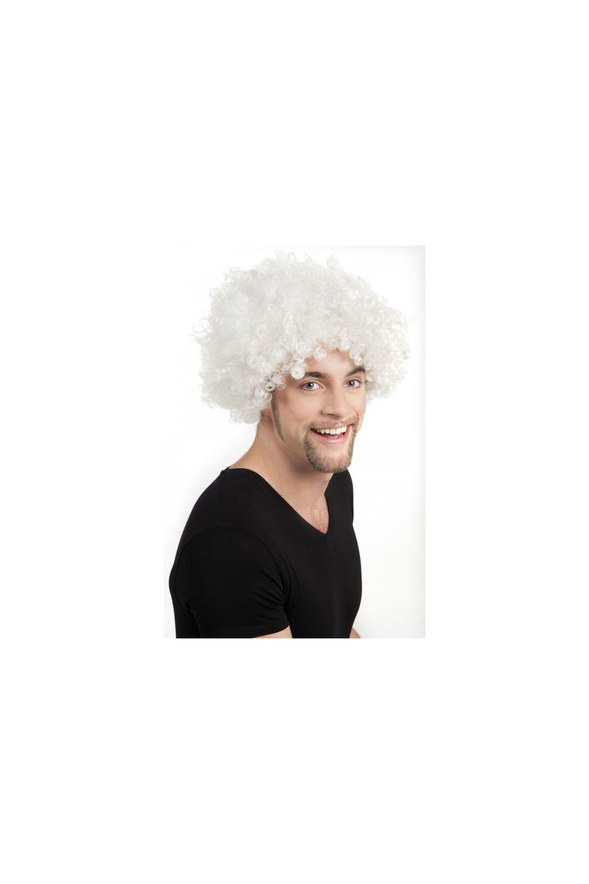 Beyaz Renk Kıvırcık Afro Bonus Peruk