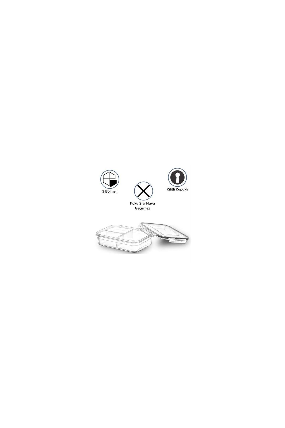 - 1 adet BUFFER® 3 Bölmeli Kilitli Kapaklı 1 Litre Erzak Saklama Kabı Diyet Saklama Kabı Taşınabilir Beslenme Kabı