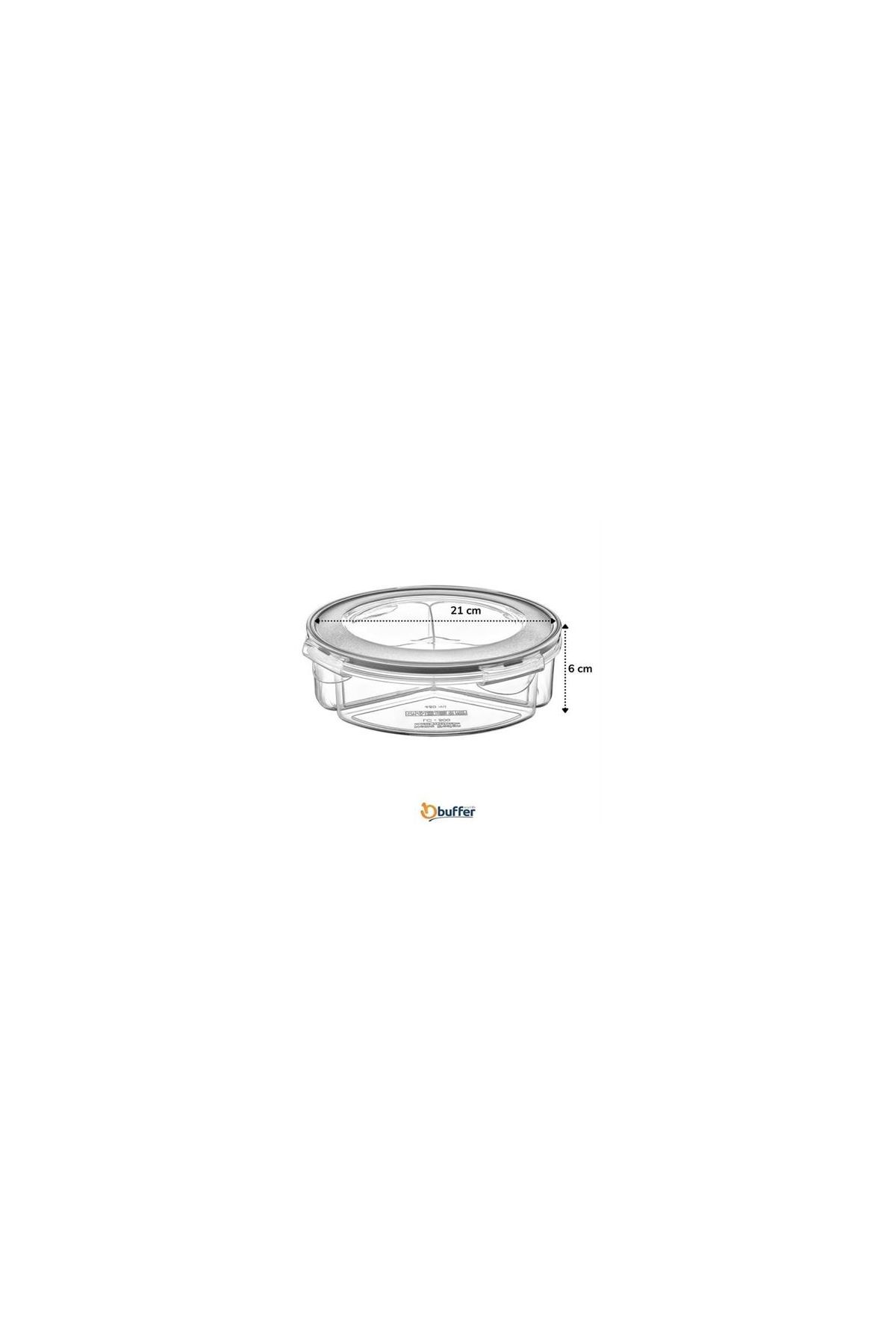 - 1 adet BUFFER® 3 Bölmeli Kilitli Kapaklı 1,35 Litre Yuvarlak Erzak Saklama Kabı Diyet Saklama Kabı Taşınabilir Beslenme Kabı