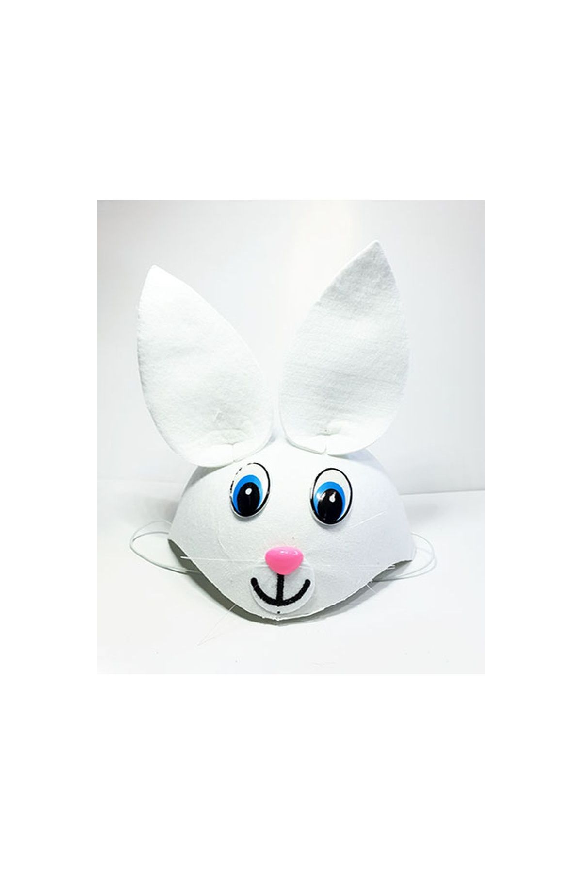 Beyaz Renk Kulaklı Tavşan Şapkası Hayvan Şapkası