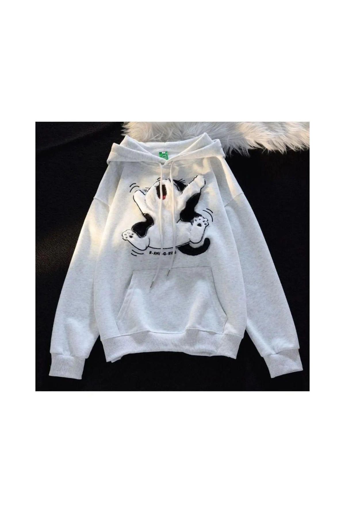 3 iplik şardonlu oversize peluş baskılı sweat beyaz