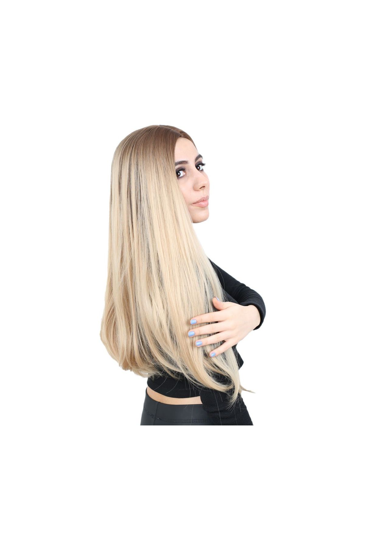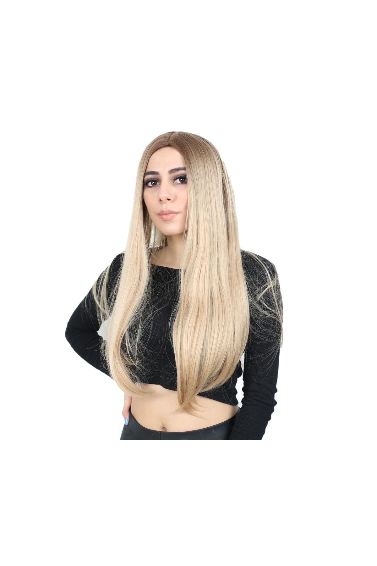 Fiber Sentetik Uzun Düz Peruk - Kumral / Balköpüğü Ombreli