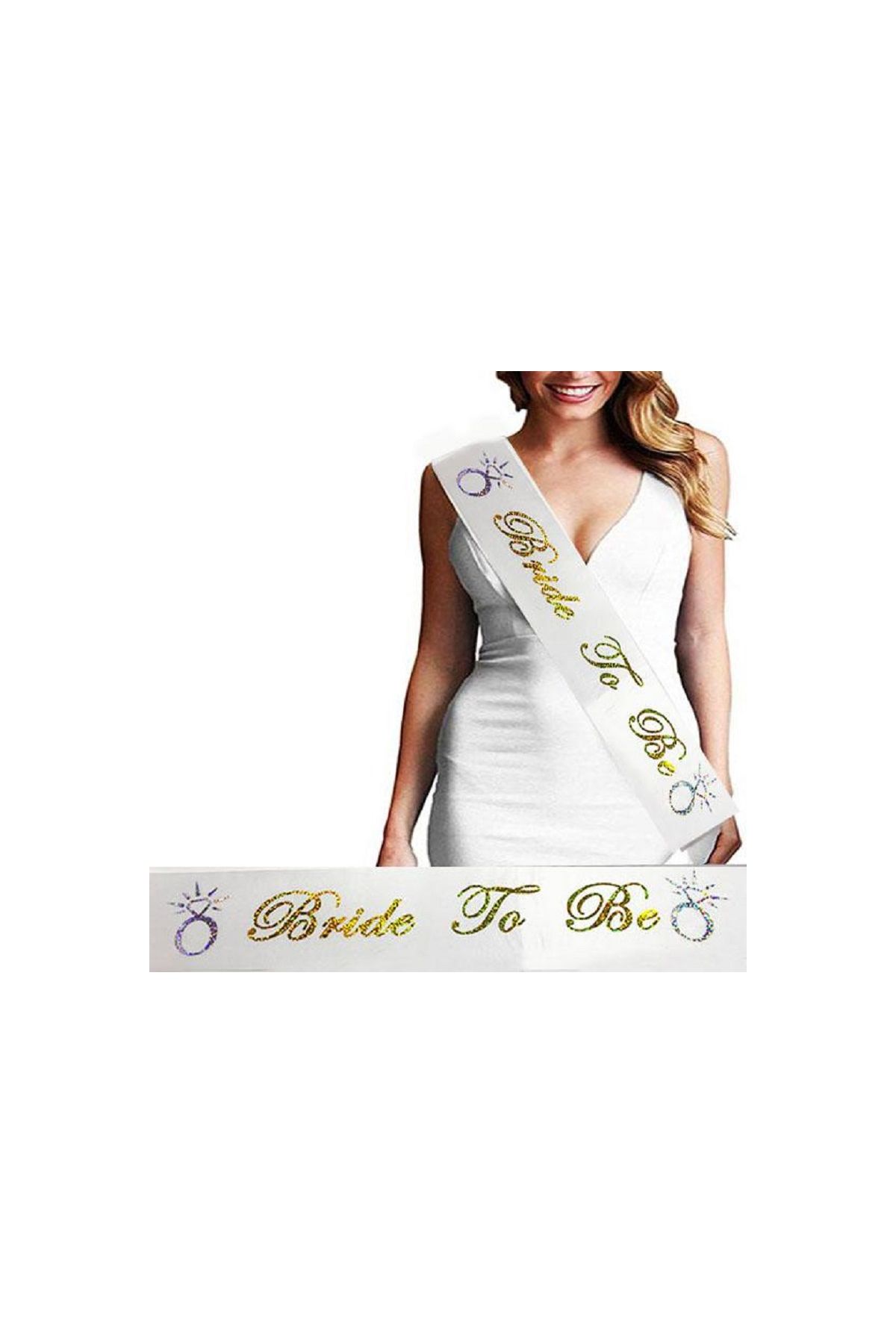 Bride To Be Saten Kuşak Beyaz Üzeri Hologramlı Metalize Altın Yazılı 160x9.5 cm