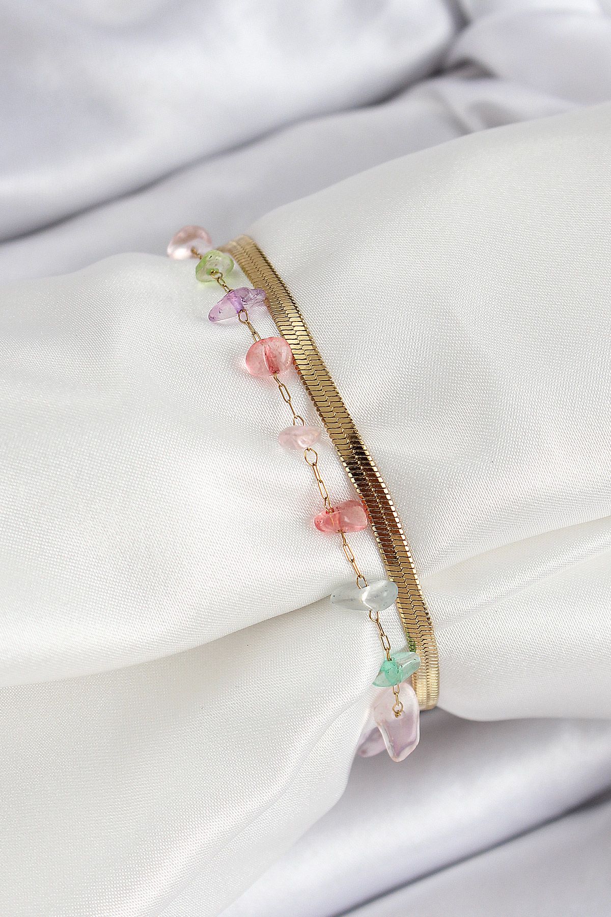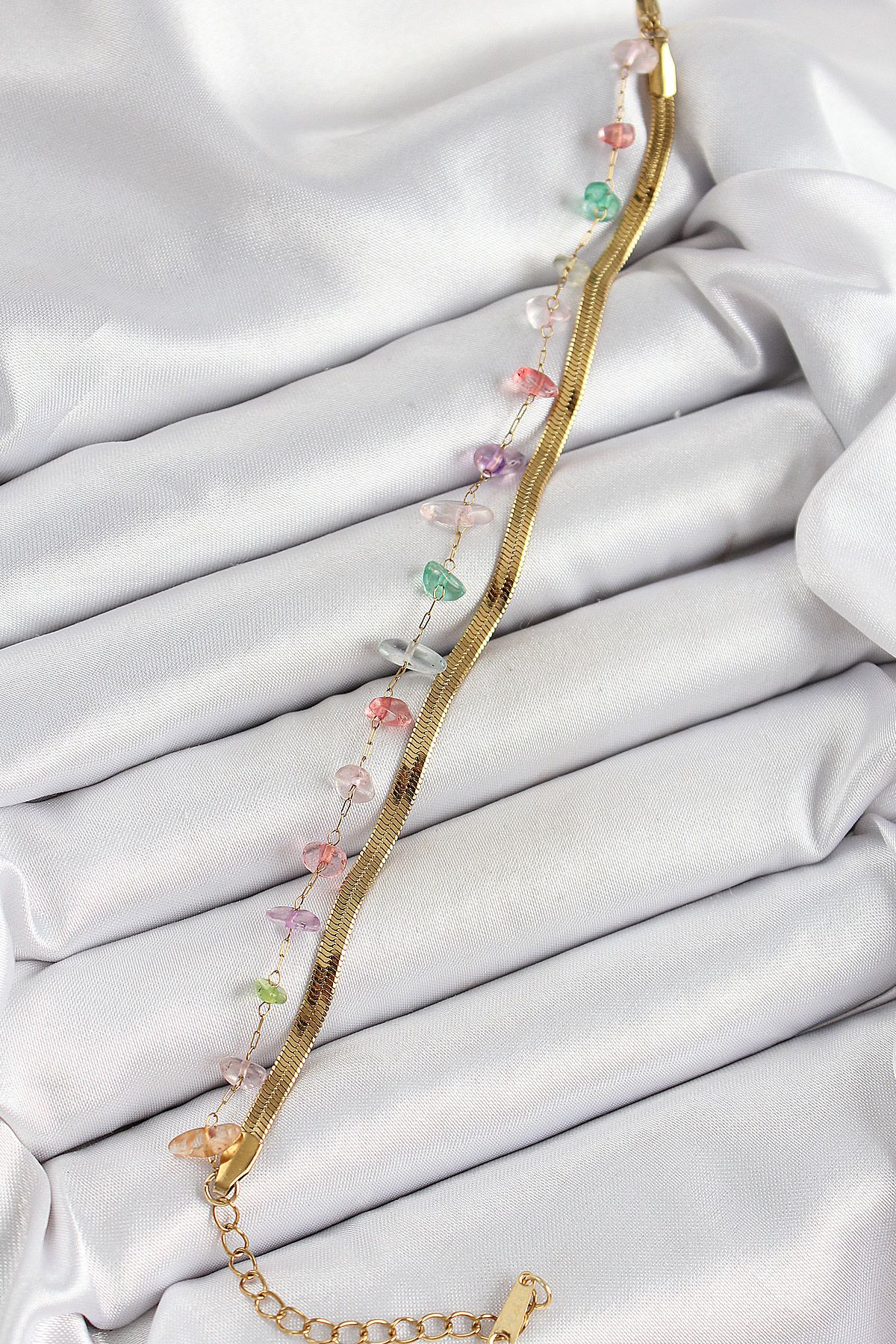 316L Çelik Gold Renk Kristal Karışık Renkli Taşlı Kadın Bileklik - TJ-BB7091