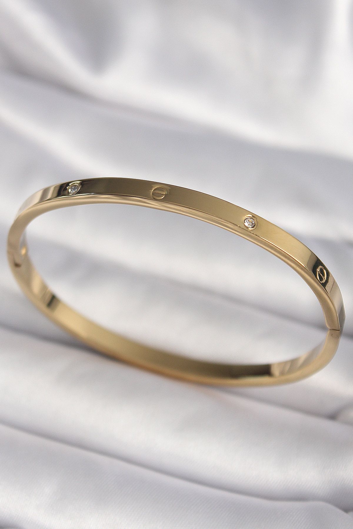 316L Çelik Gold Renk Zirkon Taşlı Cartier Model Kadın Bilezik - TJ-BB6739