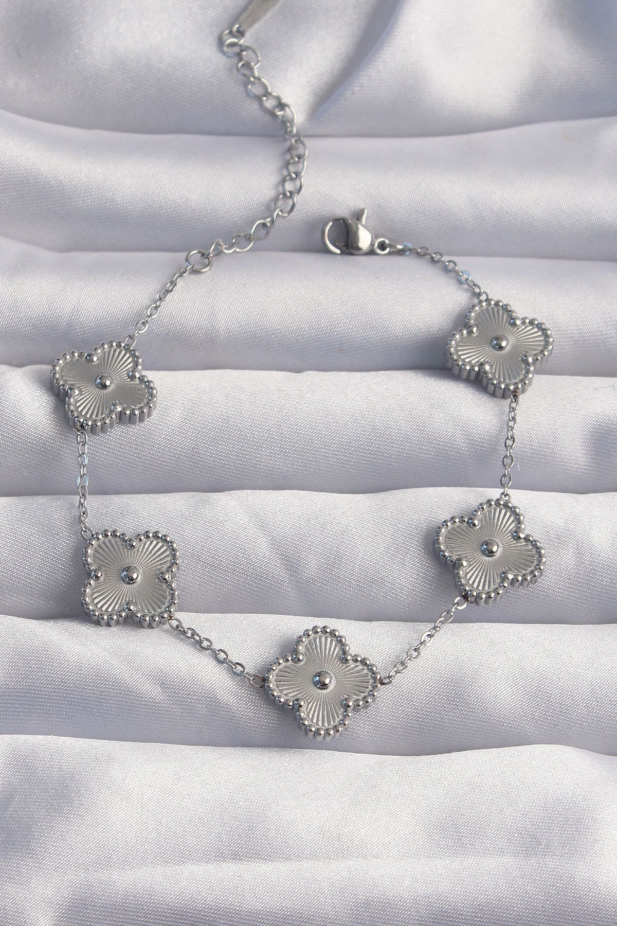316L Çelik Gümüş Renk Motifli Yonca Bileklik - TJ-BB6269