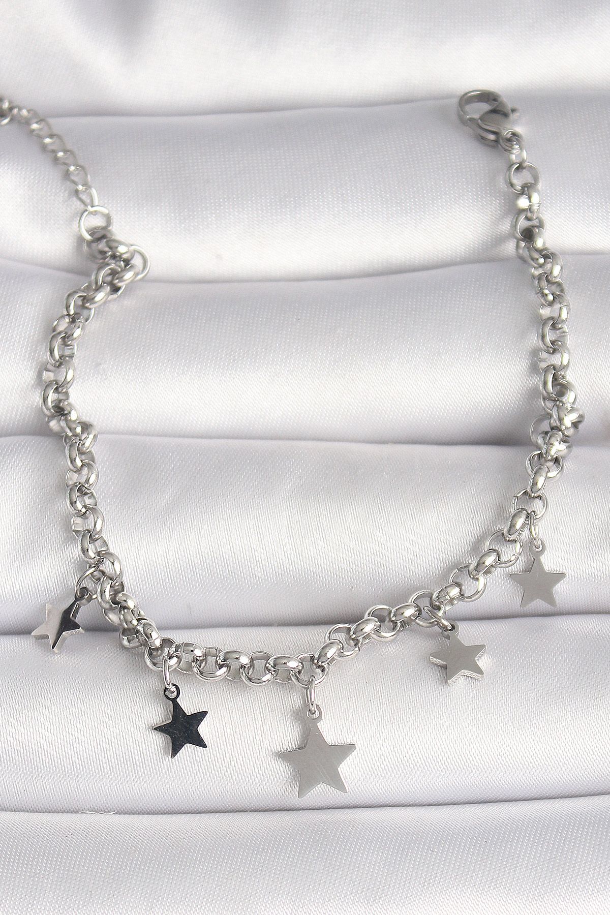 316L Çelik Gümüş Renk Zincir Sallantı Yıldız Figür Kadın Bileklik - TJ-BB6756
