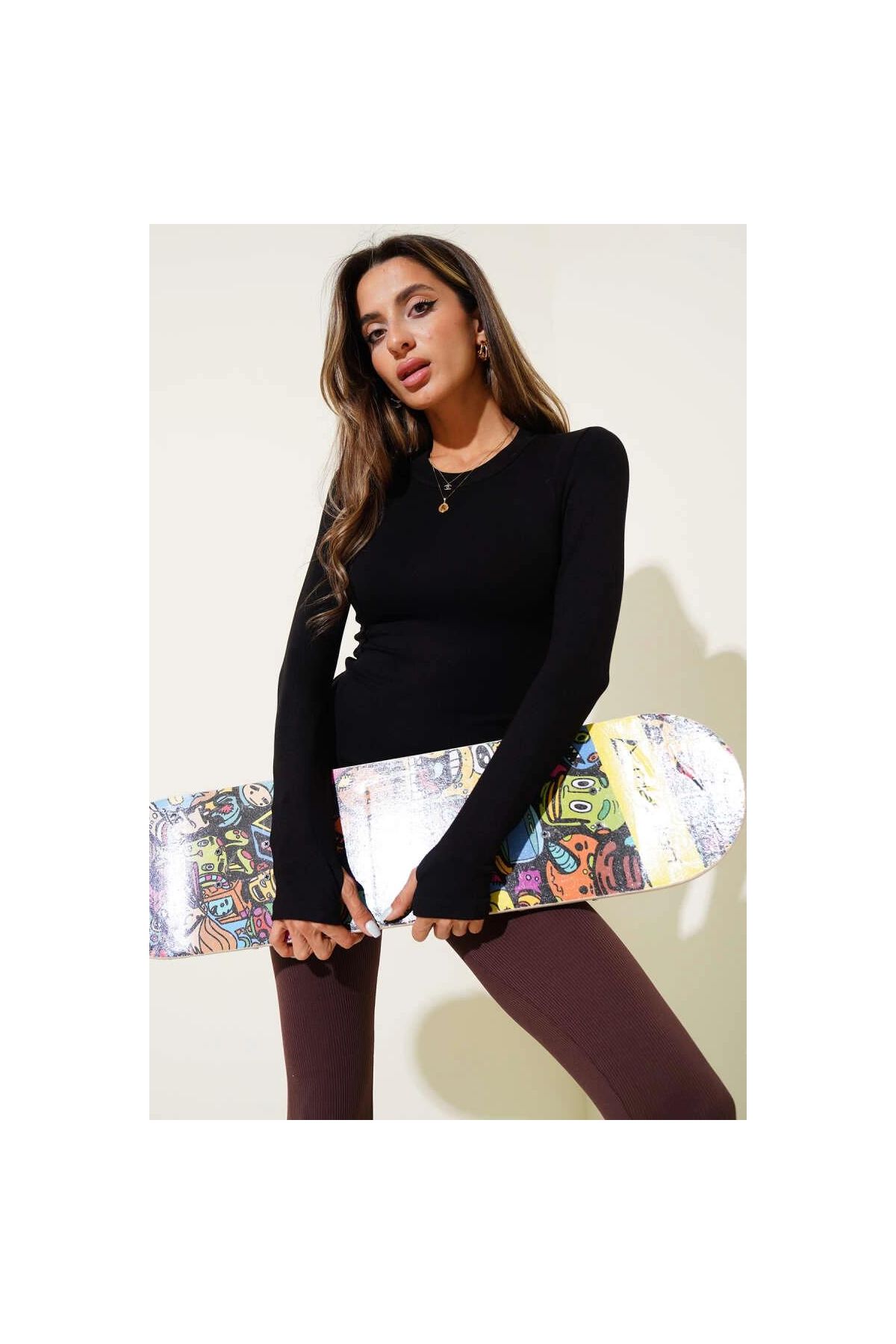 Basic Parmak Geçirme Detaylı Bluz siyah