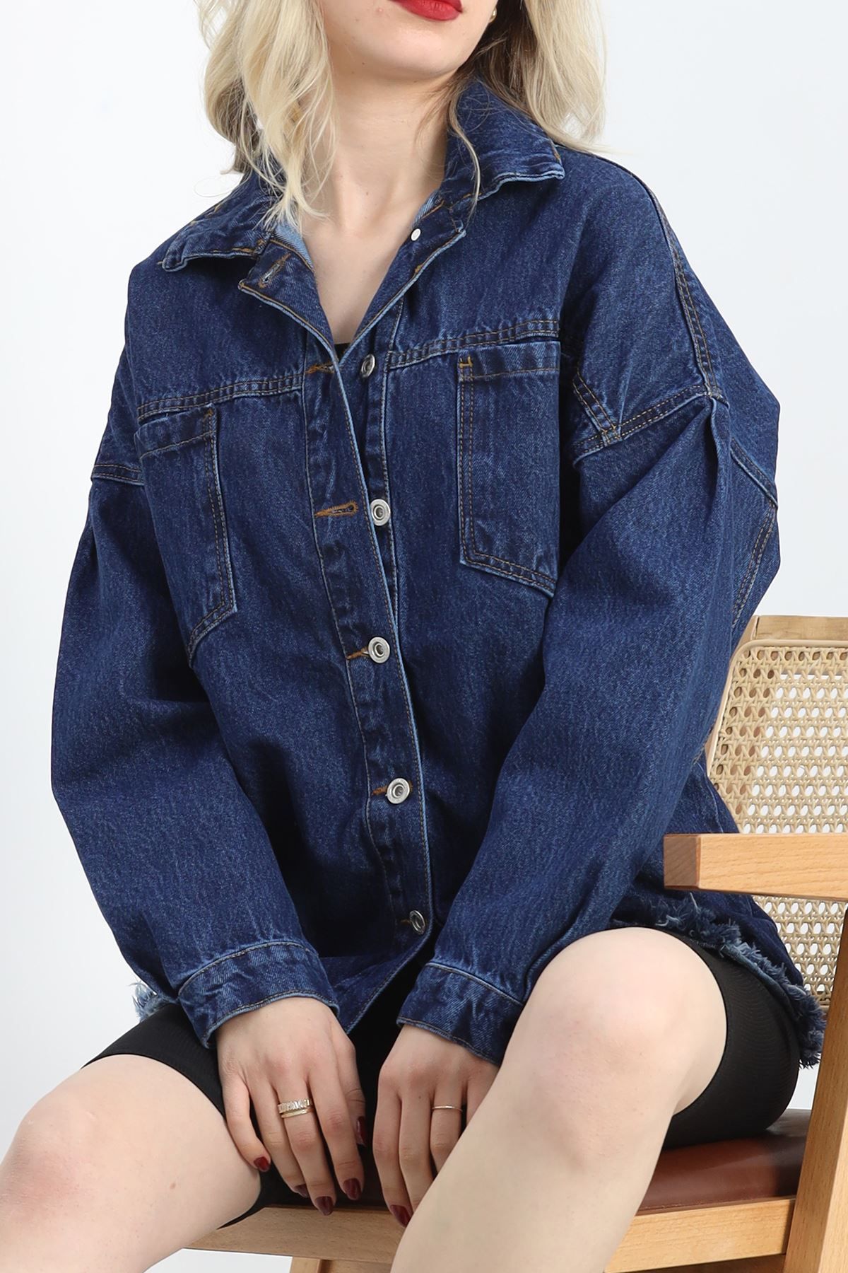 Püsküllü Cep Detay Kot Ceket Koyumavi