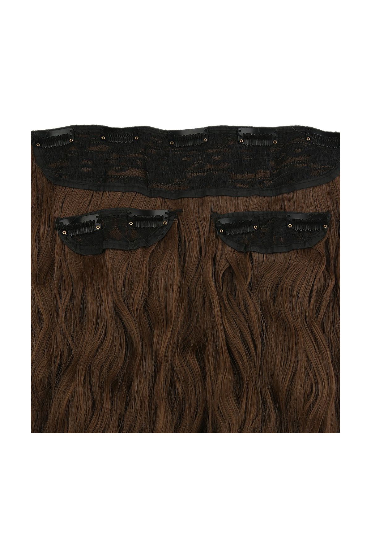 Fiber Sentetik Kabarık Dalgalı Yarım Ay + 2 Yan Çıt Çıt - Kumral