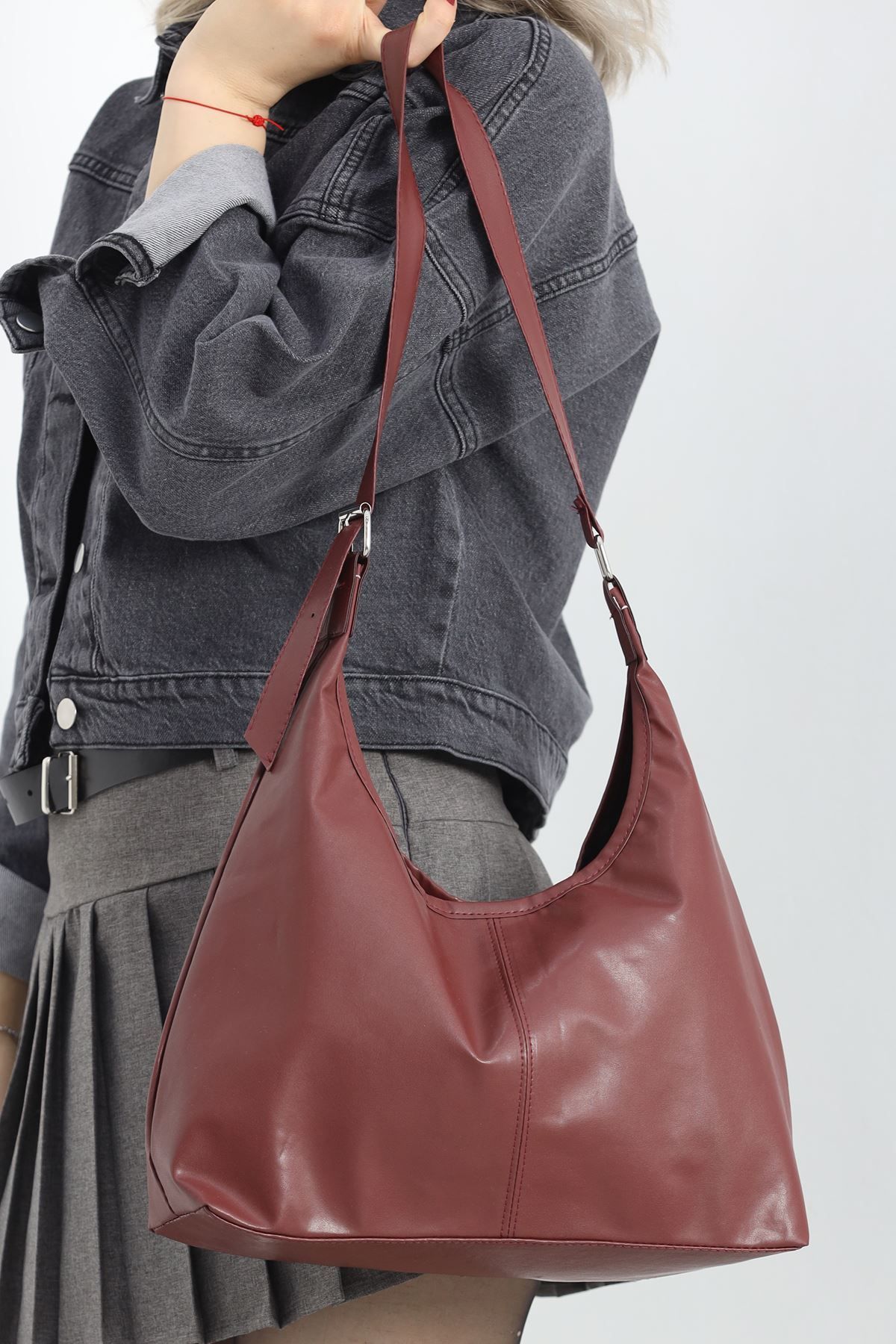 Deri Gümüş Tokalı Çanta Bordo