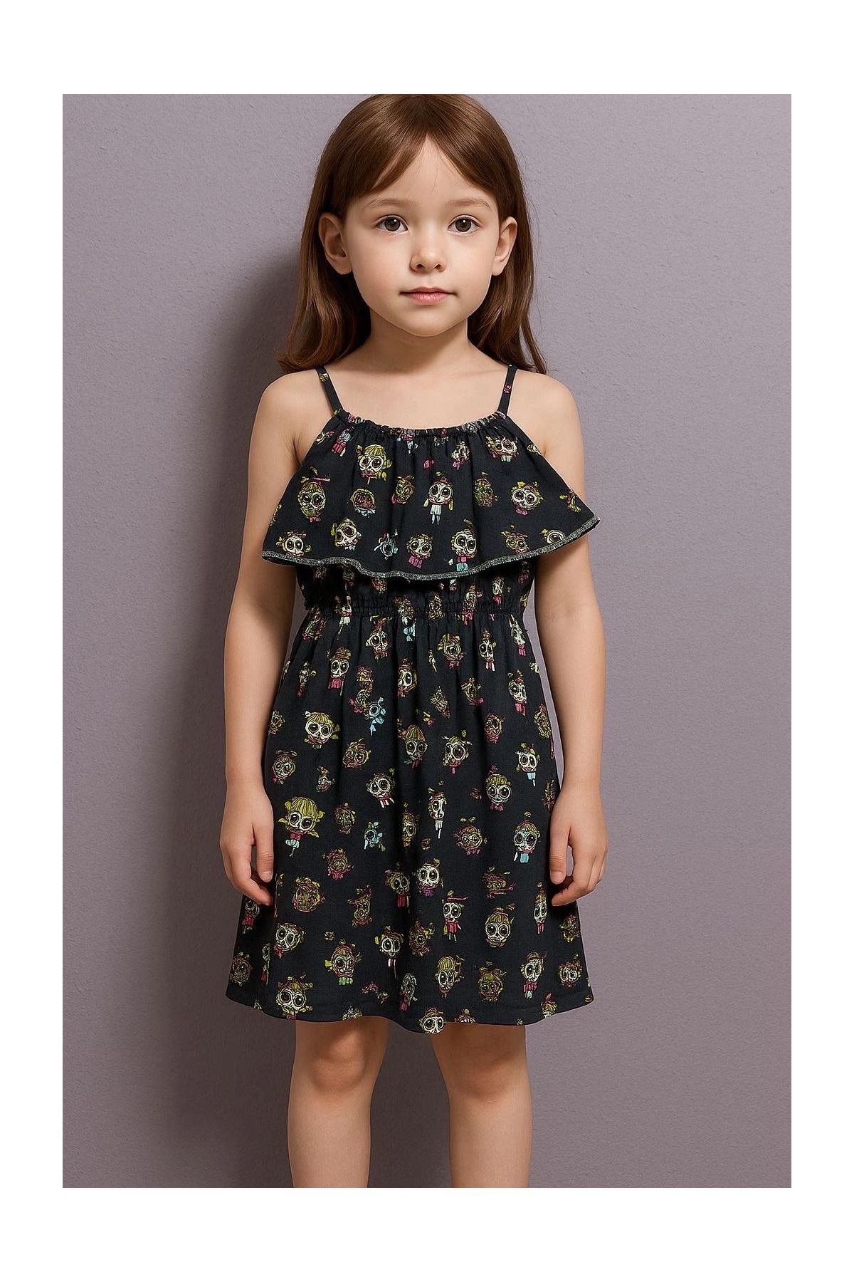 Karikatür baskılı askılı kız çocuk elbisesi lacivert--Hayallerindeki kız çocuk elbisesi artık burada! Lacivert rengiyle şıklığı ve zarafeti bir arada sunan Karikatür Baskılı Askılı Kız Çocuk Elbisesi, minik prenseslerin vazgeçilmezi olmaya aday. Özellikler: - Yüksek kaliteli ve cilde dostu kumaştan üretilmiştir. - Rahat kesimi sayesinde hareket özgürlüğü sunar. - Omuz kısımlarındaki askılar, kullanımı kolaylaştırır. - Lacivert rengin şıklığı, karikatür baskısıyla eğlenceli bir hale getirilmiştir. - Günlük kullanıma uygun ve kolayca kombinlenebilir. Küçük prensesinizin gardırobuna renk katacak, sevimli ve şık karikatür baskılı elbiseyi hemen sepetinize ekleyin!