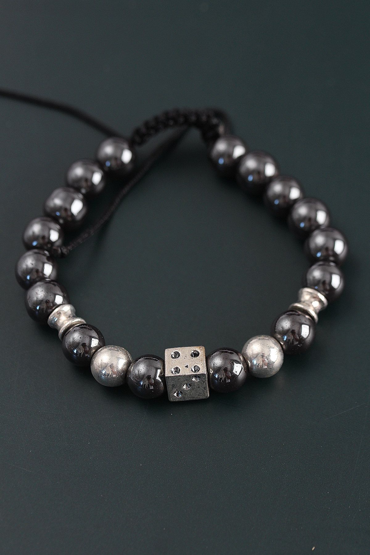 Doğal Taş Zar Model Gümüş Ve Füme Renk Asansörlü Erkek Bileklik - TJ-EB3759