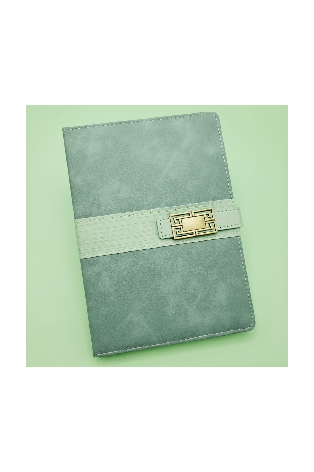 Deri Kapaklı Çizgili Not Defteri Açık Yeşil