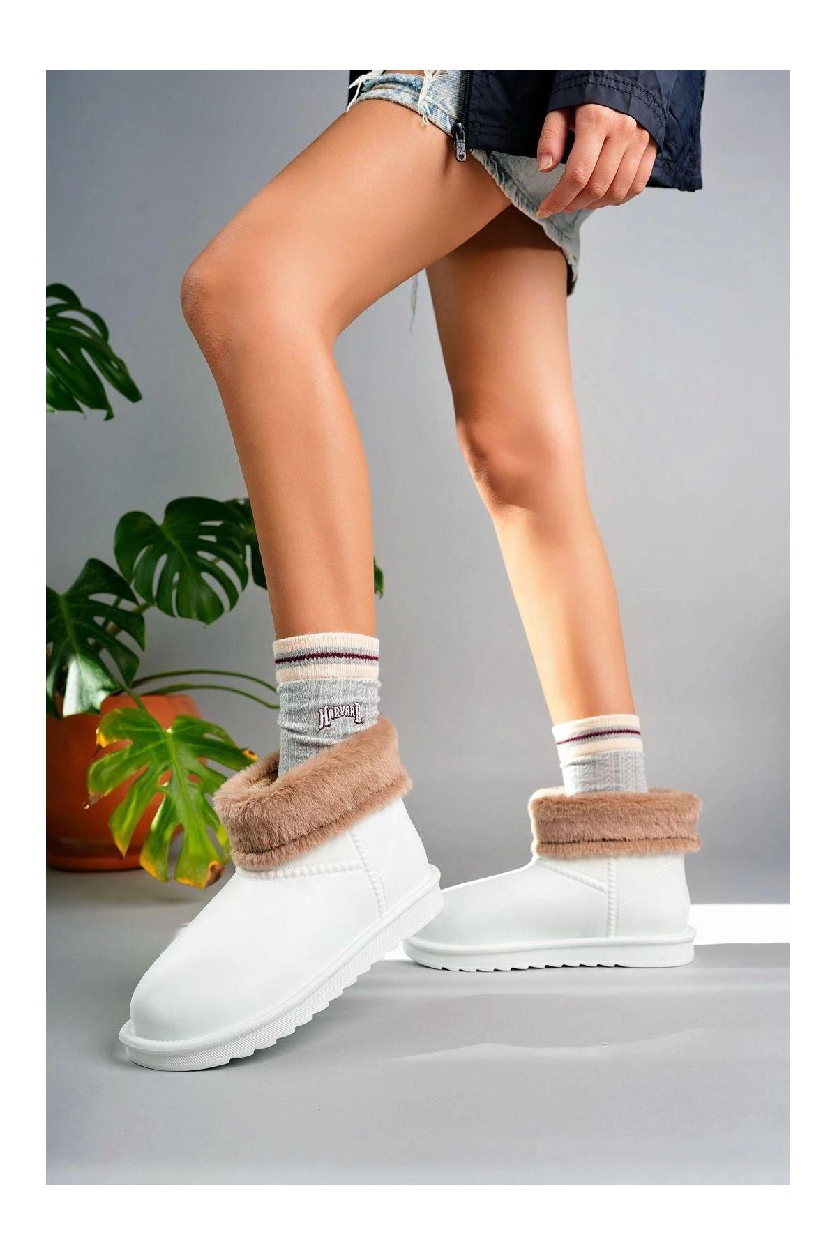 Mordi Beyaz Oval Burunlu Su Geçirmez İçi Kürklü Bot