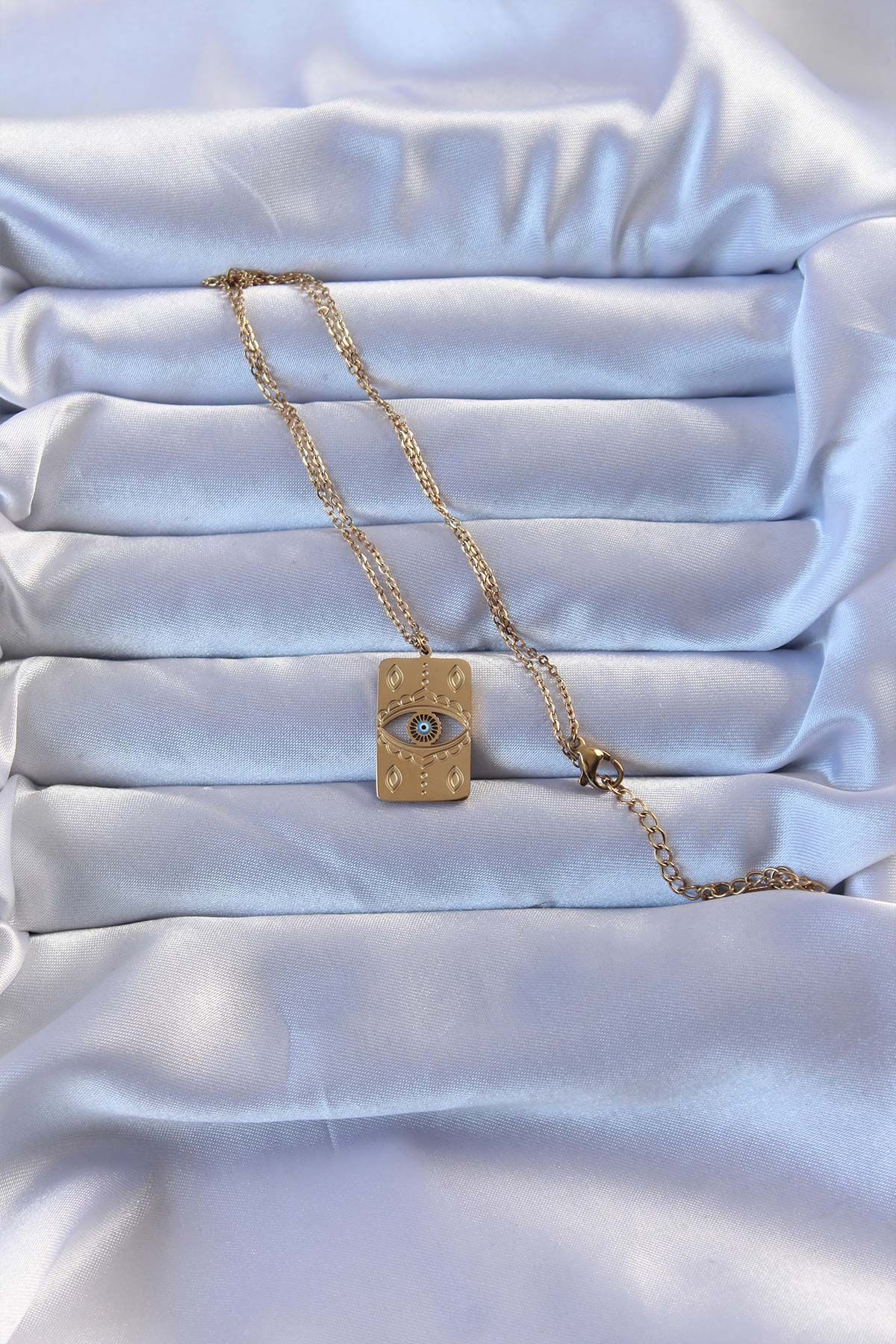 316L Altın Renk İşlemeli Nazarlı Vintage Kolye - TJ-BKO9266