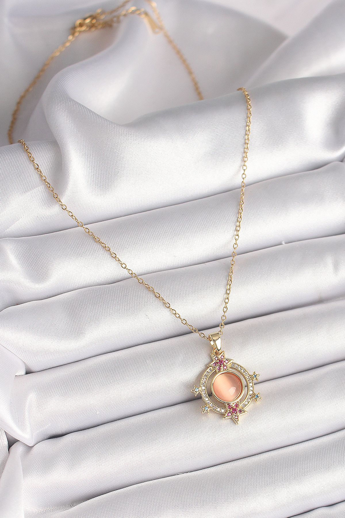 316L Çelik Gold Renk Zincir Turuncu Sedefli Zirkon Taşlı Yıldız Detay Kadın Kolye - TJ-BKO9869