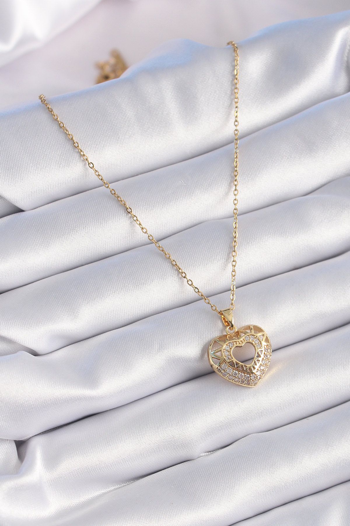 316L Çelik Gold Renk Zirkon Taşlı Kalp Model Vintage Kadın Kolye - TJ-BKO9325