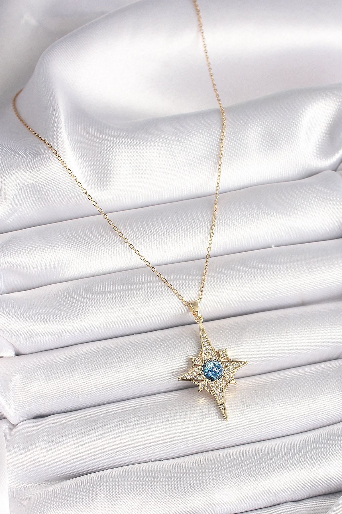316L Çelik Gold Renk Zirkon Taşlı Kutup Yıldız Model Kadın Kolye - TJ-BKO9842