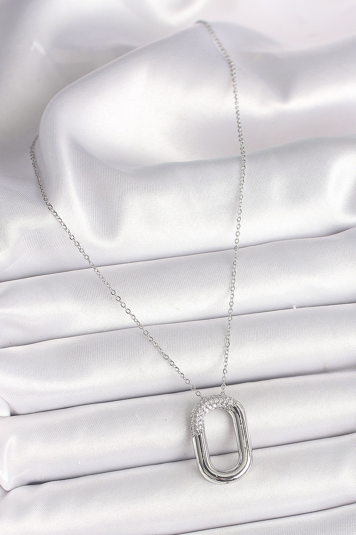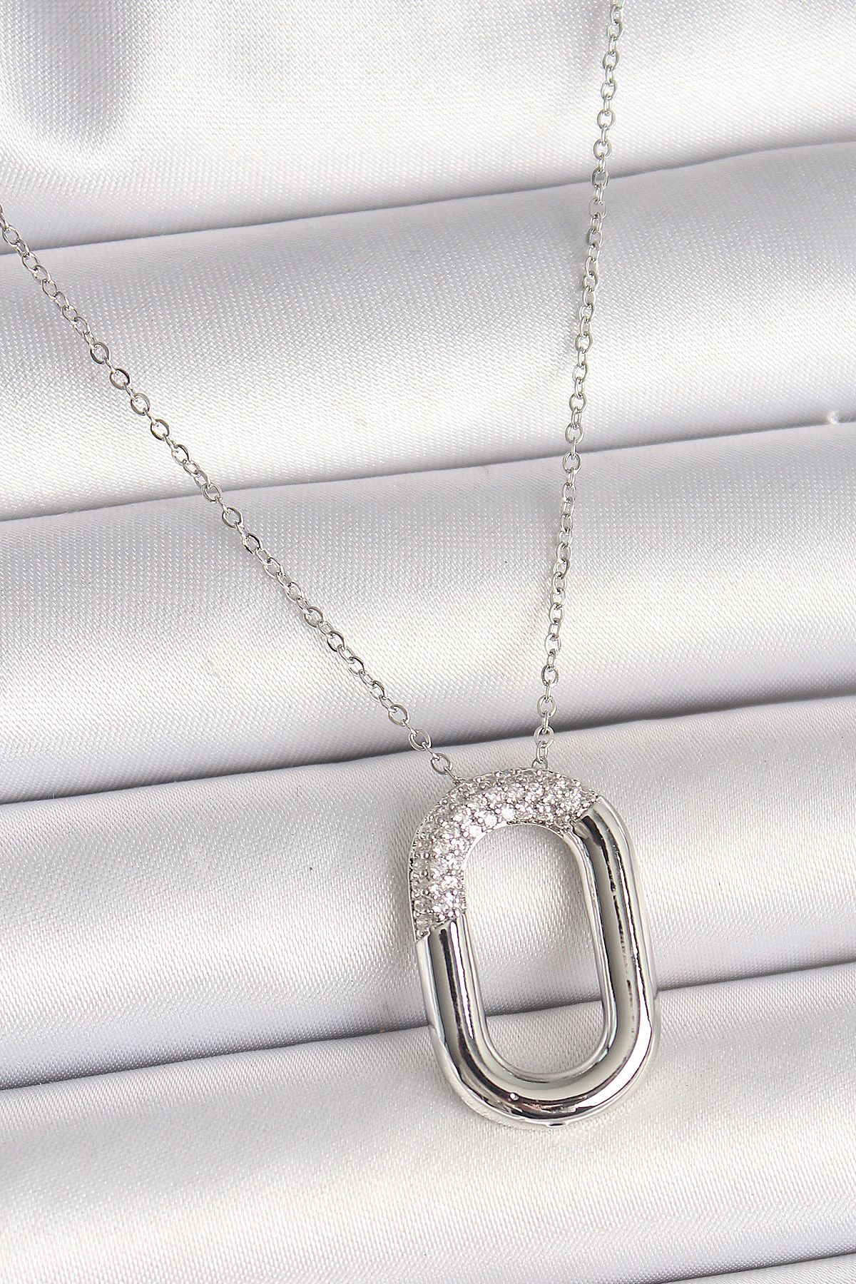 316L Çelik Gümüş Renk Zirkon Taşlı Oval Model Kadın Kolye - TJ-BKO9845