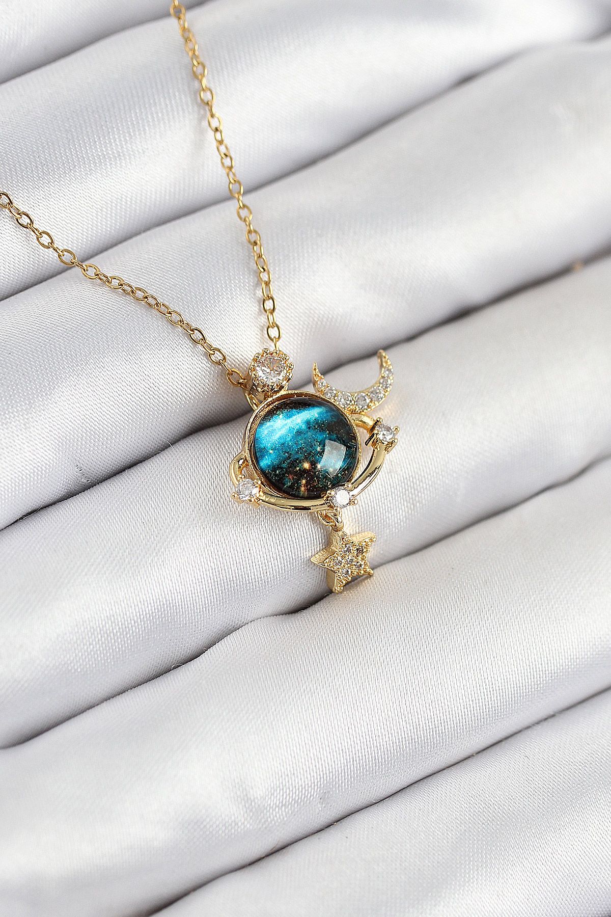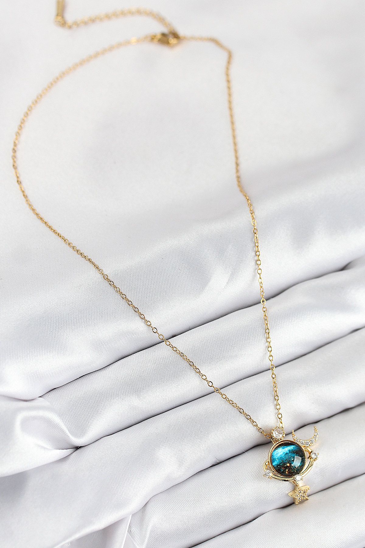 316L Çelik Zirkon Taşlı Gezegen Model Gold Renk Kadın Kolye - TJ-BKO10507