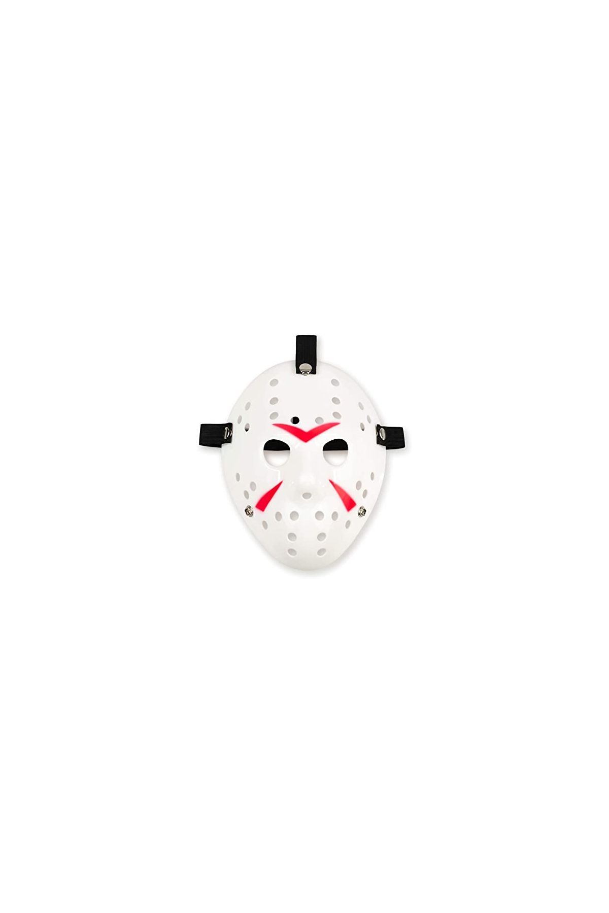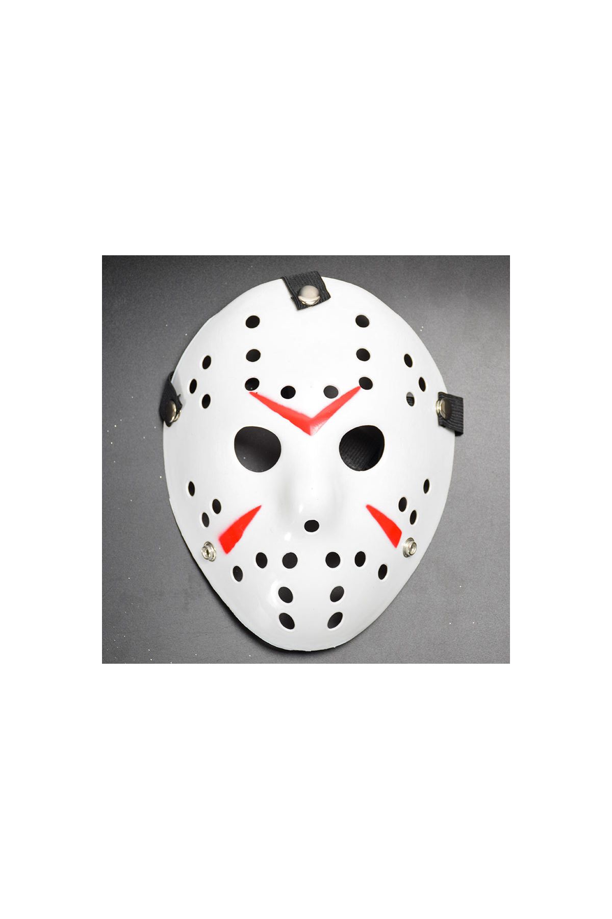 Beyaz Renk Kırmızı Çizgili Tam Yüz Hokey Jason Maskesi Hannibal Maskesi ( )
