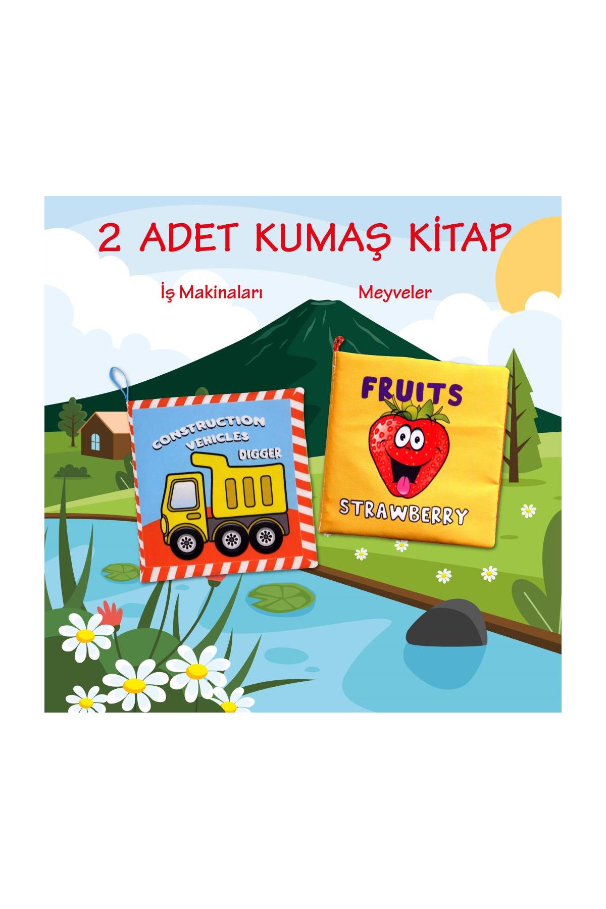 247 2 Kitap İngilizce İş Makinaları ve Meyveler Kumaş Sessiz Kitap