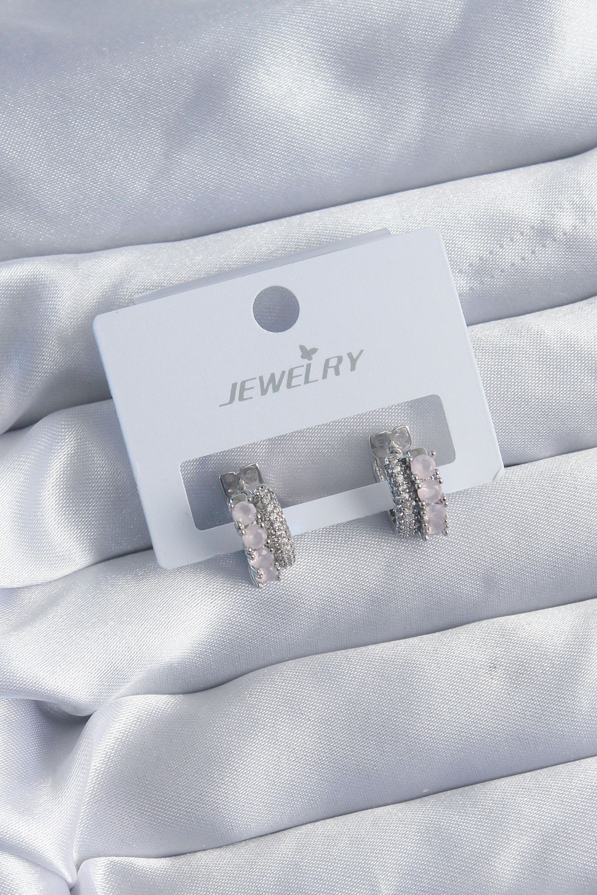 943 Pirinç Gümüş Renk Zirkon Taşlı Kadın Küpe
