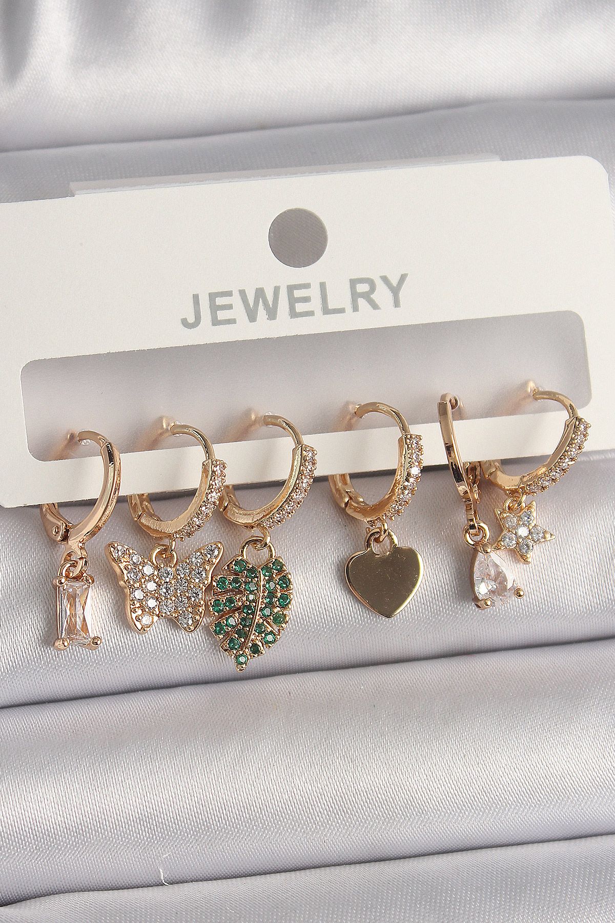 Pirinç Gold Renk Renkli Kelebek Figür Çoklu Figür Kadın Küpe Seti - TJ-BKP10096