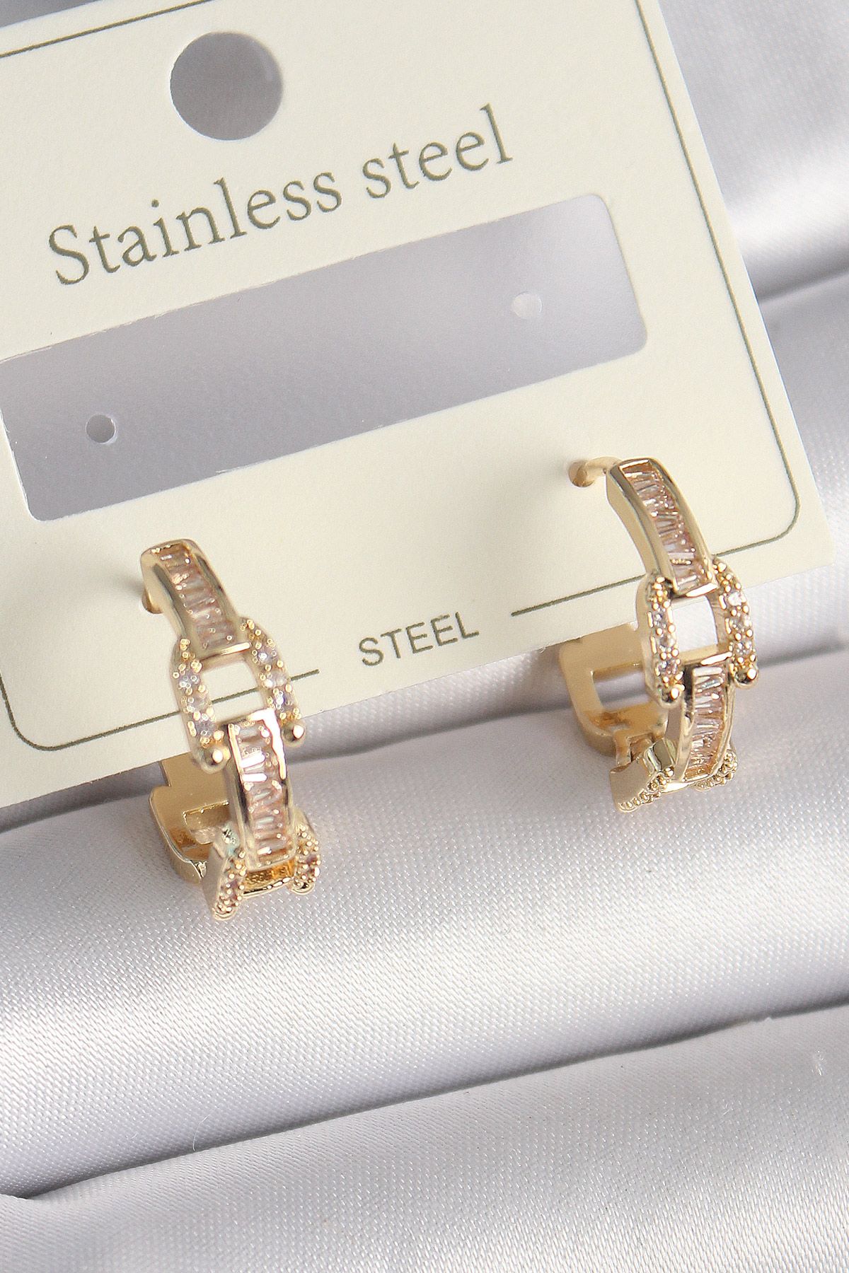 Pirinç Gold Renk Zirkon Taşlı Zincir Model Kadın Küpe - TJ-BKP9735