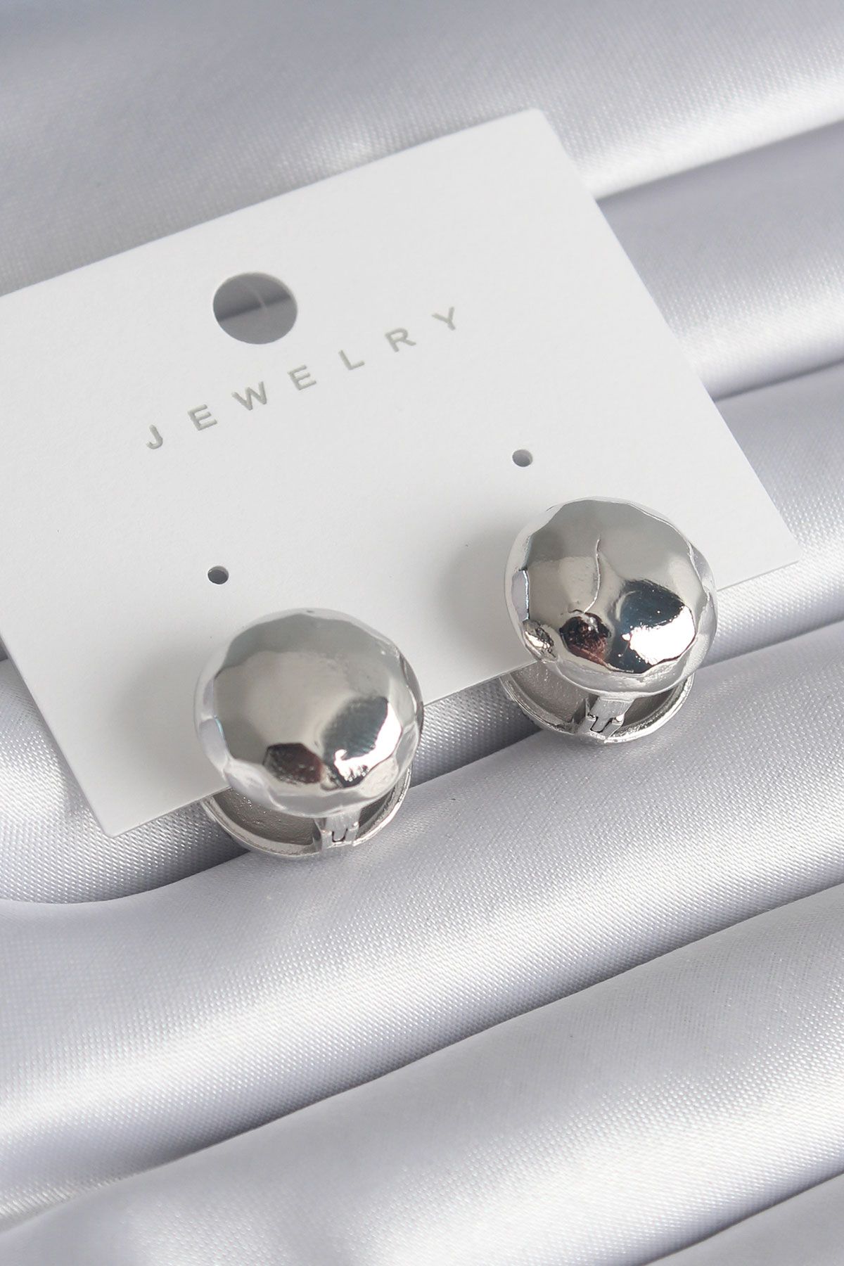 Pirinç Gümüş Renk İşleme Detay Top Model Kadın Küpe - TJ-BKP8479