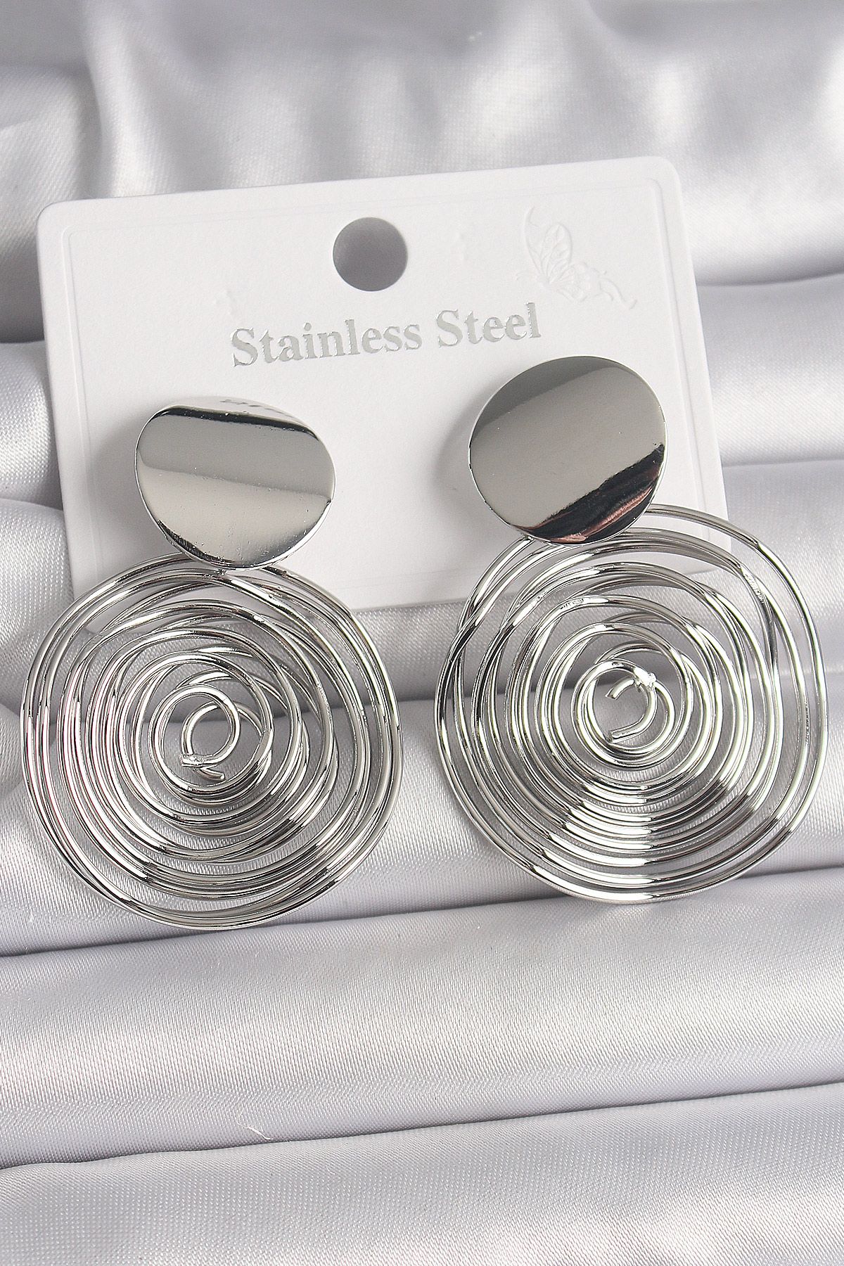 Pirinç Gümüş Renk Sarmal Daire Model Kadın Küpe - TJ-BKP10085