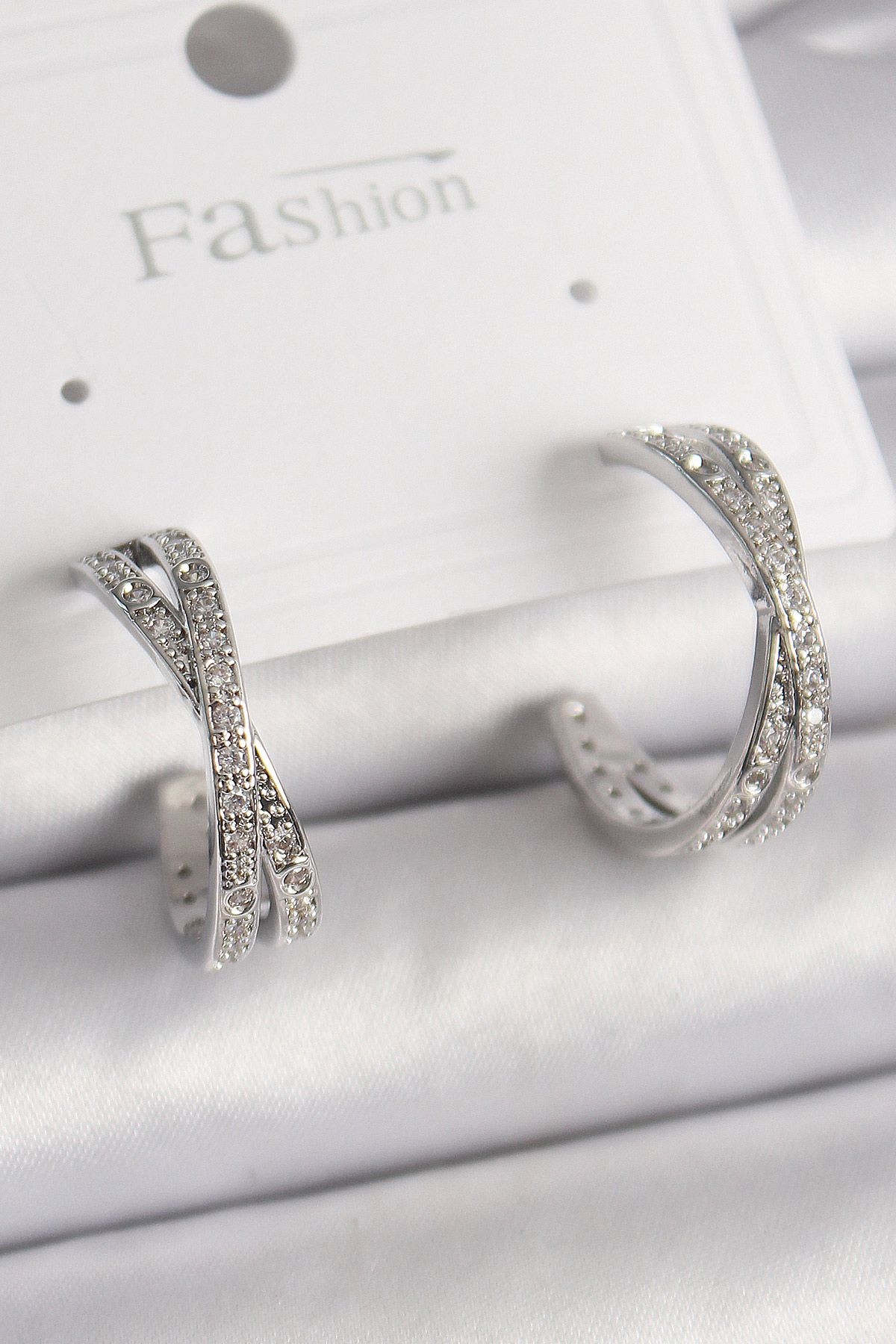 Pirinç Gümüş Renk Zirkon Taşlı Sarmal Halka Model Kadın Küpe - TJ-BKP9900