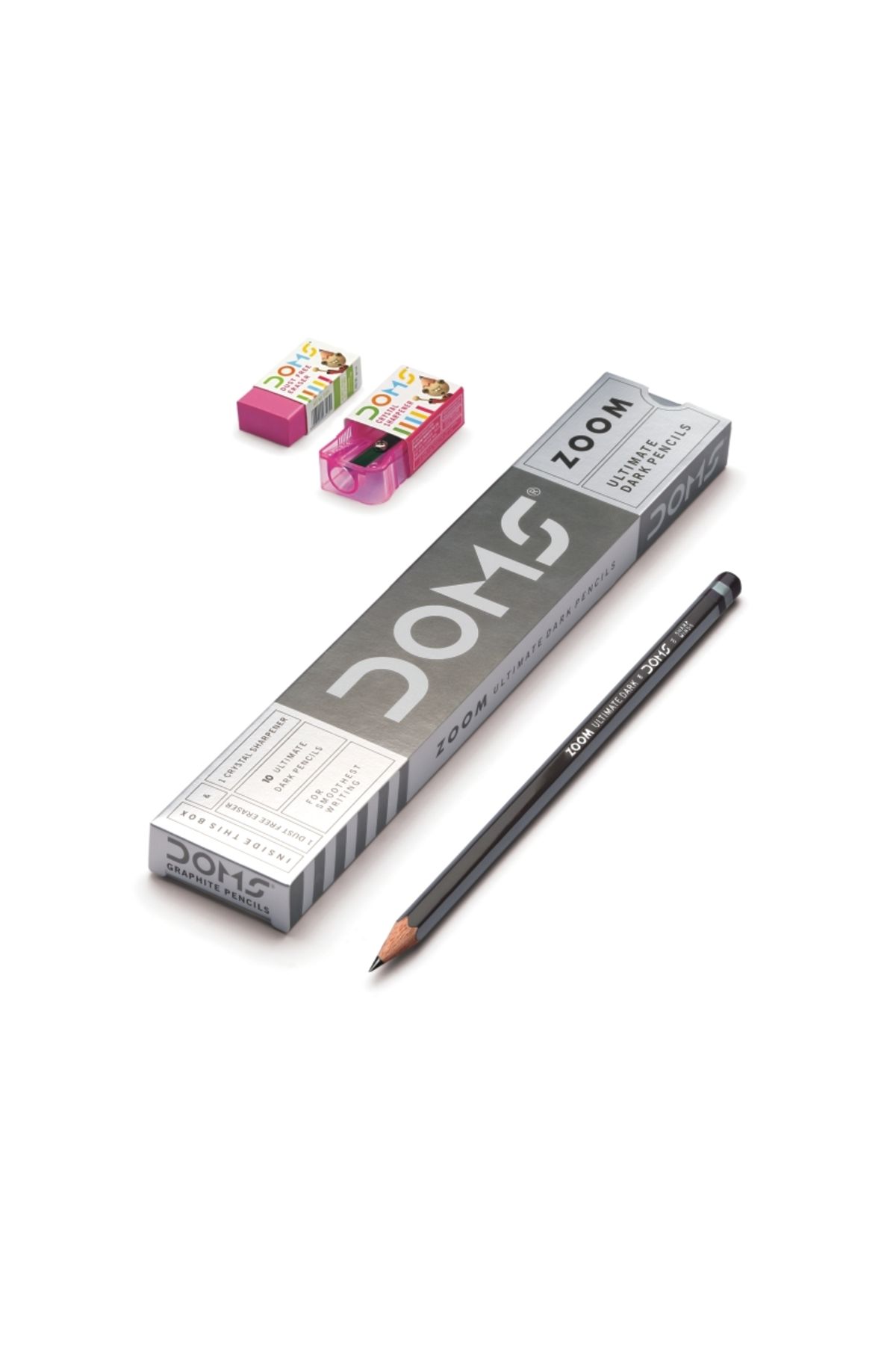 Doms Zoom Köşeli Kurşun Kalem 12'li + Silgi + Kalemtraş 6'lı Paket